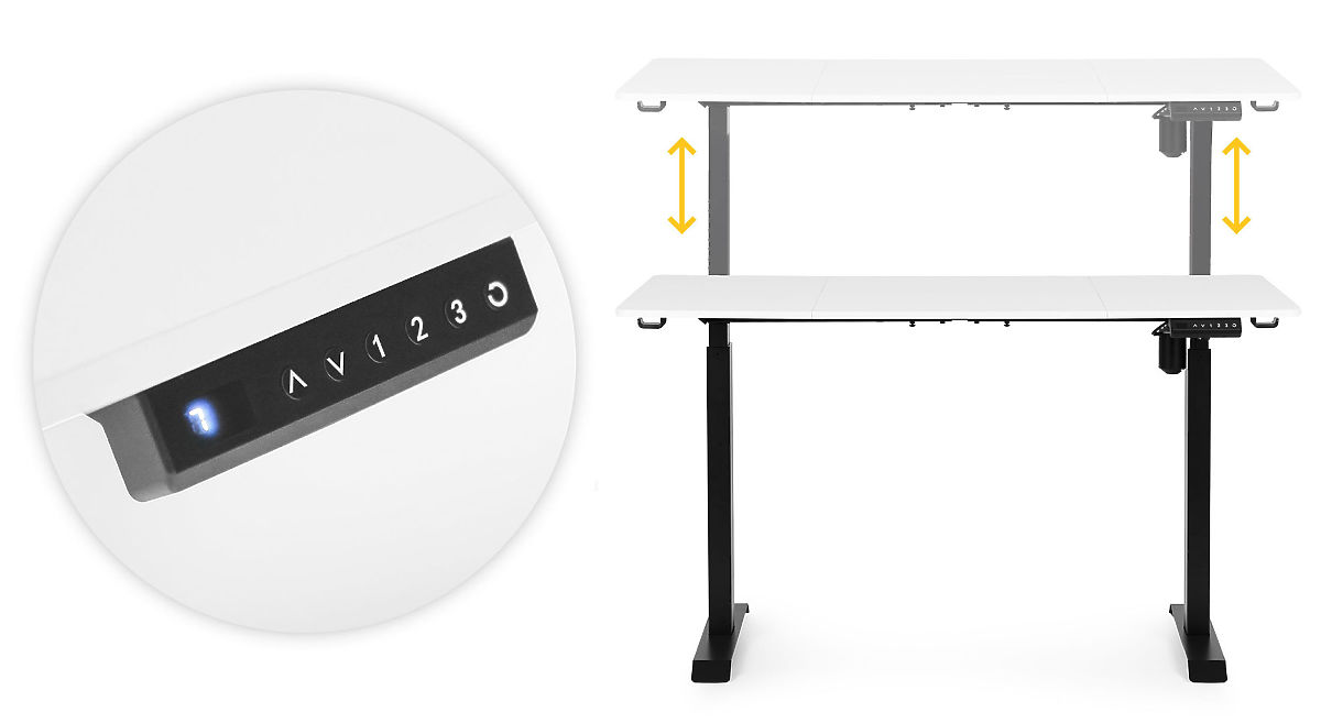 TELJES KONTROLL KÉZKÖZELBENAz intuitív vezérlőpanel fel/le gombokkal lehetővé teszi az asztallap magasságának pontos beállítását, és három számbillentyű lehetővé teszi a kedvenc pozíciók mentését. Ezenkívül lehetőség van a pozícióváltás emlékeztetőjének beállítására 30, 45 vagy 60 percenként, ami támogatja az egészséges munkaszokások fenntartását.