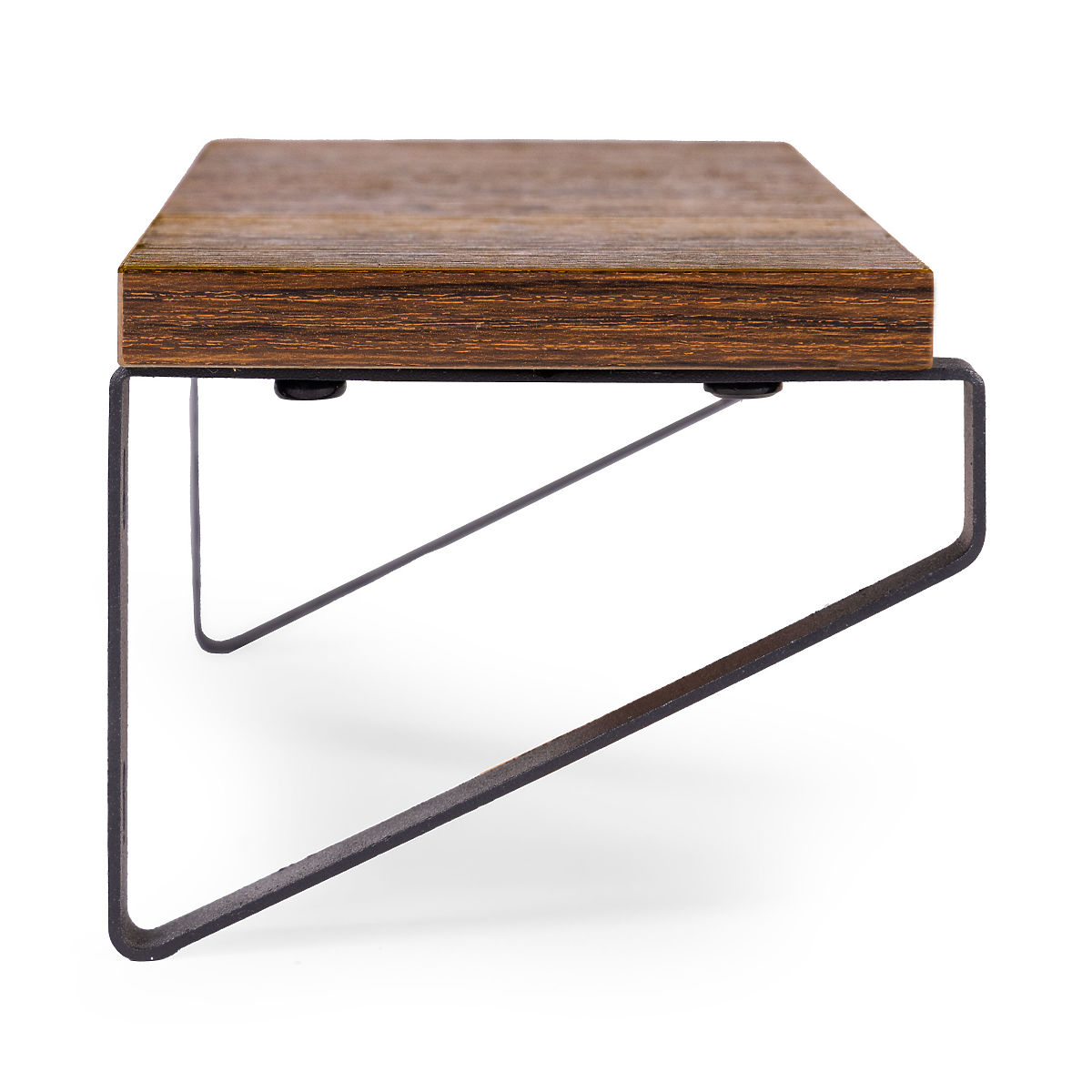 TARTÓS ANYAGOKA termék porszórt acélból készült, ami korrózióállóságot és mechanikai sérülésekkel szembeni ellenállást biztosít. A forgácslapból készült polcok természetes fa hatású színben vannak befejezve, ami kiemeli a bútor dekoratív, loft jellegét.