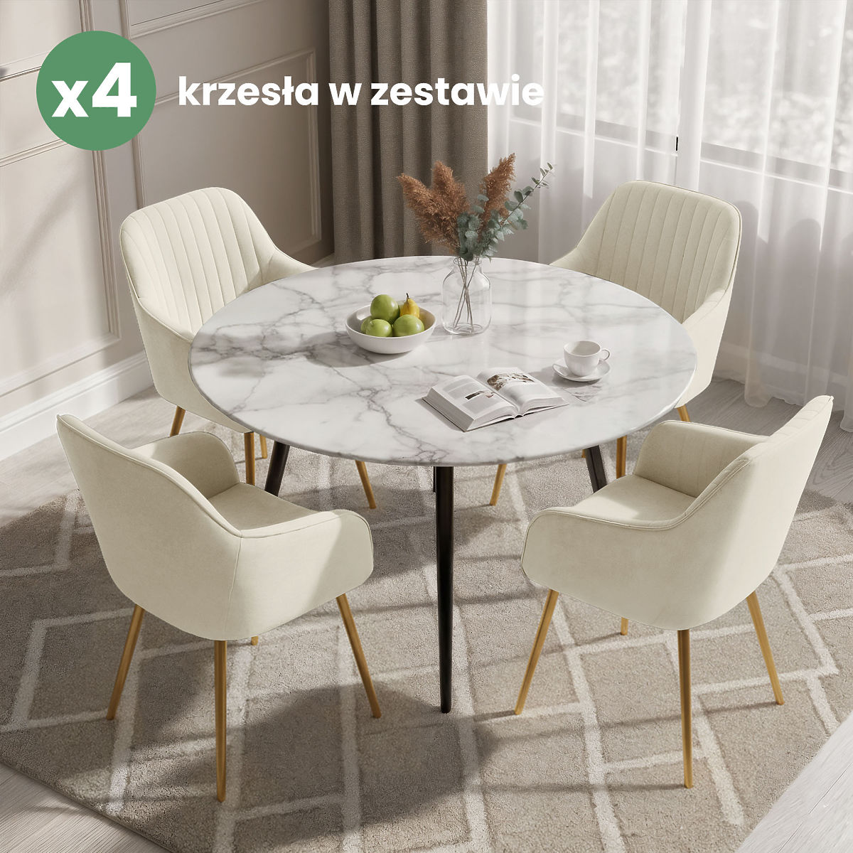 Lukahome.hu » Étkező és konyha / Étkező szék / 4x Bársony kárpitozott szék varrással Krém FLORENCE Arany lábak