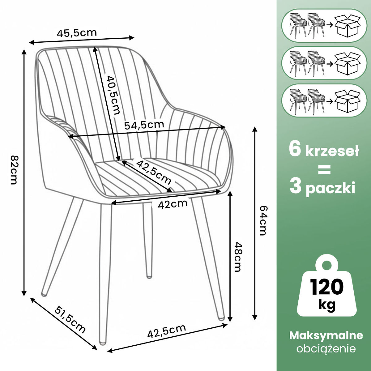 A FLORENCE bársonyszék elegáns kárpitozással és függőleges varrással rendelkezik, amely finom bájt és stílust kölcsönöz neki. A szék lábai a színváltozattól függően lehetnek feketék vagy arany színűek, ami még különlegesebb megjelenést biztosít. A Florence bársonyszék kiemeli minden modern étkező dekorációját, és a szerény elrendezést érdekes és stílusos belső térré alakítja. Ez a modell leginkább a modern, soft modern vagy glamour stílushoz illik.