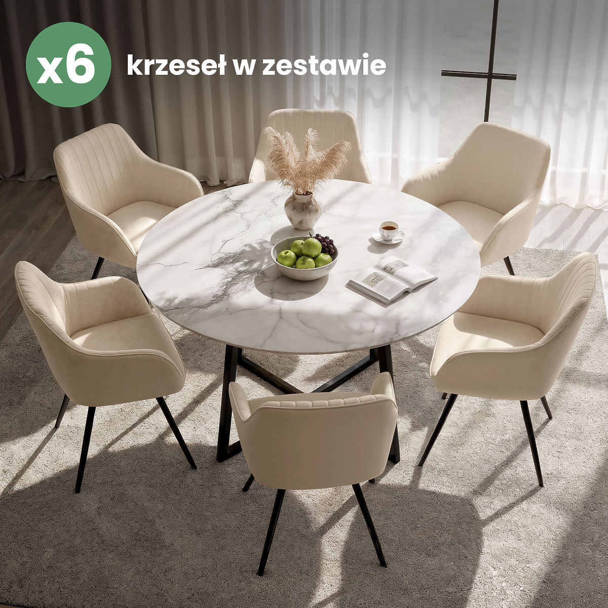 Lukahome.hu » Étkező és konyha / Étkező szék / 6x Bársony forgószék varrással Bézs TURNO Fekete lábak