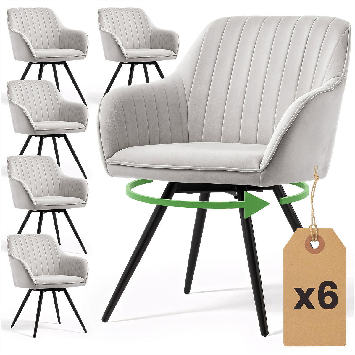 Lukahome.hu » Étkező és konyha / Étkező szék / 6x Bársony forgatható szék varrással Szürke TURNO Fekete lábak