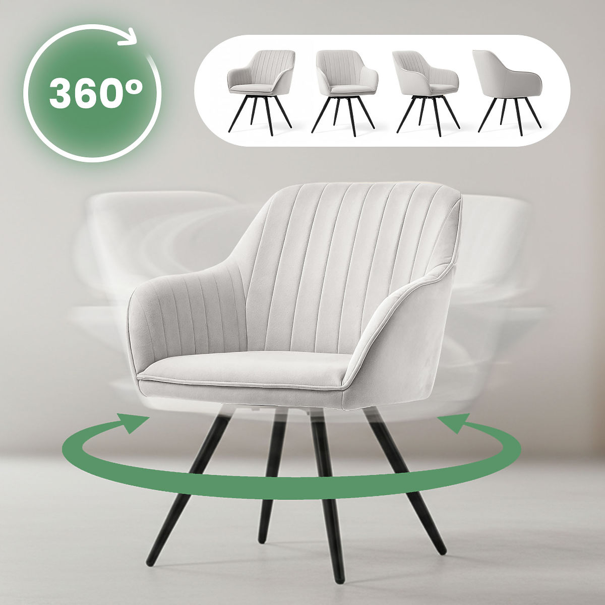 Forgatható bársony szék szürke színben, fekete lábakkal. .. többet