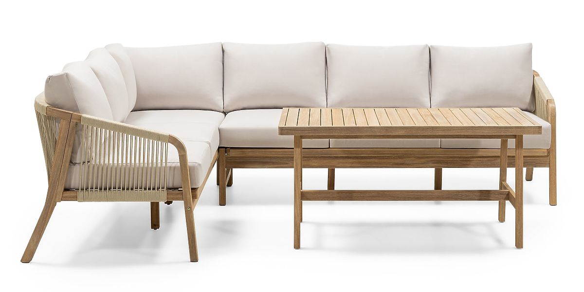 Lukahome.hu » Kerti bútorok / Kerti szettek / Kerti sarokgarnitúra asztallal Castello, fonott, akácfa FSC, teak kinézet, bézs