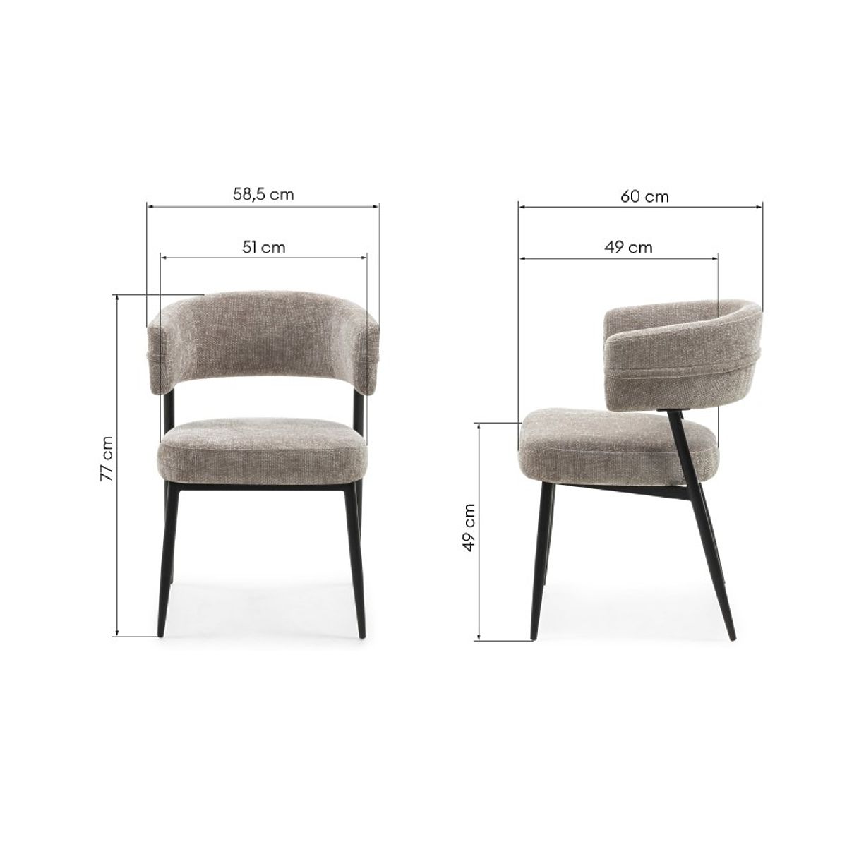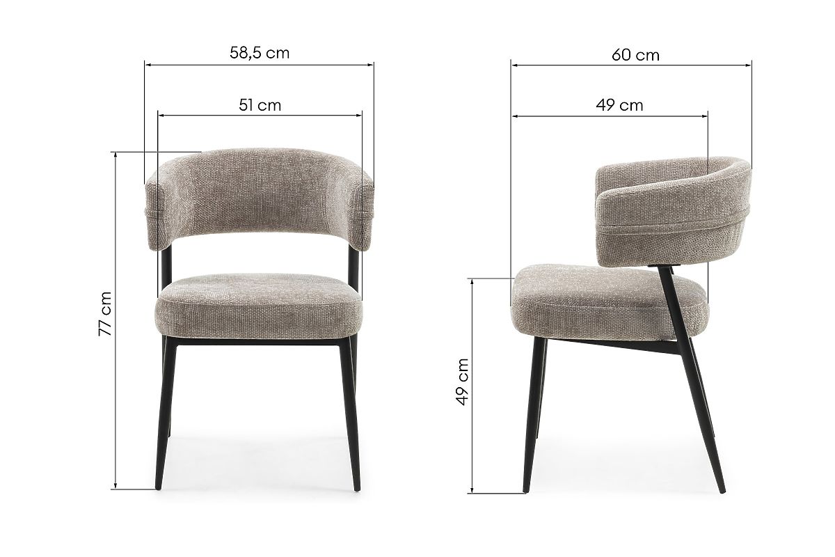 A Rosario szék a modern stílus eleganciáját és kényelmét képviseli, amely tökéletesen illik minden étkezőbe. A lekerekített háttámla és a habbal töltött ülés kivételes kényelmet nyújt még hosszabb ülés esetén is. A bézs kárpitozás puha szövetből otthonosságot és finom bájt kölcsönöz a belső térnek, meleg akcentust hozva a dekorációba. A fekete porfestett fém szerkezet nemcsak figyelemfelkeltő, hanem hosszú évekig tartó tartósságot és stabilitást is garantál. Ideális választás azok számára, akik értékelik a magas minőségű kidolgozást és az esztétikus dizájnt.