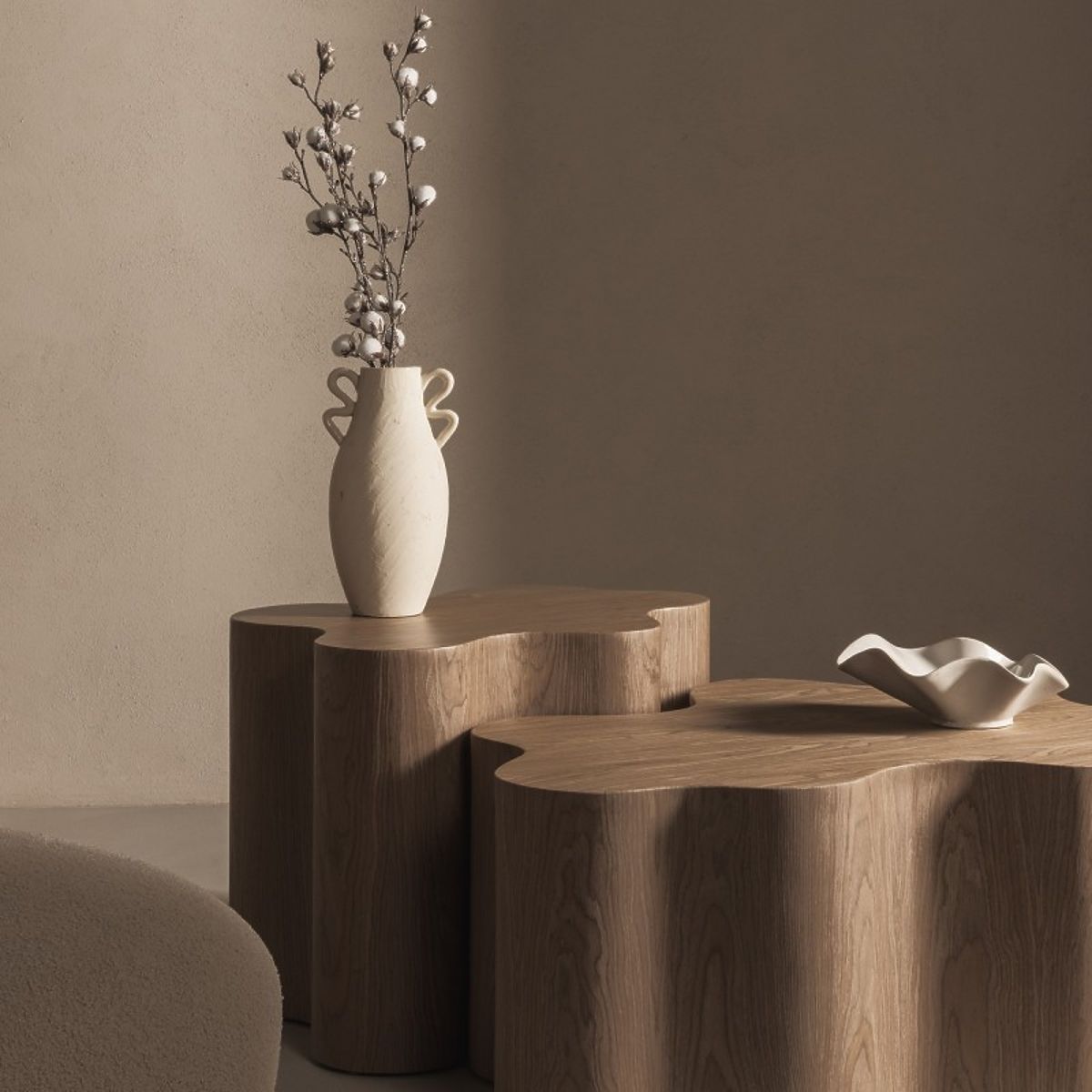 Cosmo oldalsó asztal dió színű furnérral és lekerekített formákkal. .. többet