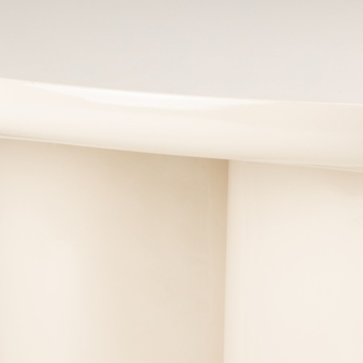 Ovális lapú, világos bézs, fényes dohányzóasztal. .. többet