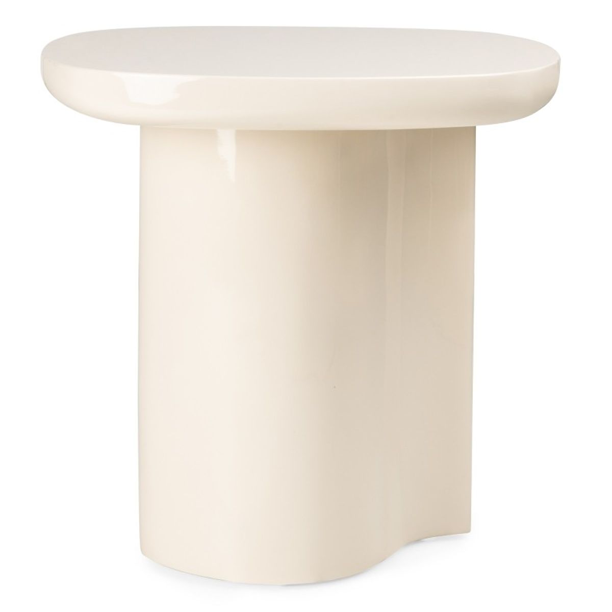 Ovális asztallapú, világos bézs, fényes oldalsó asztal. .. többet