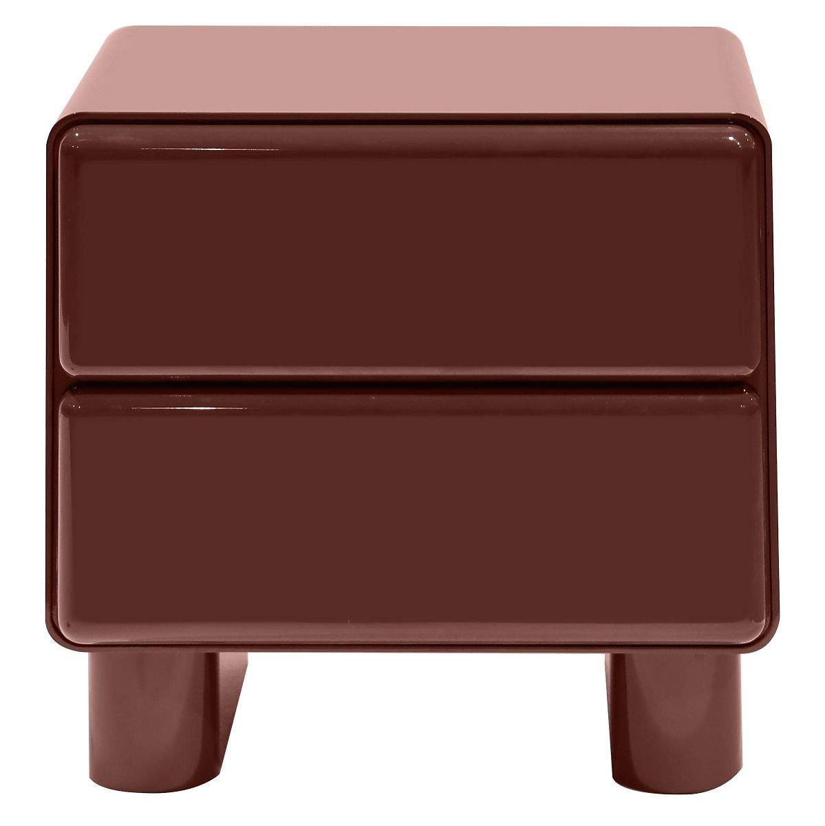 Lukahome.hu » Asztalok és dohányzóasztalok / Éjjeliszekrények / Éjjeliszekrény fiókokkal Lagos, bordó/barna, lekerekített, fényes