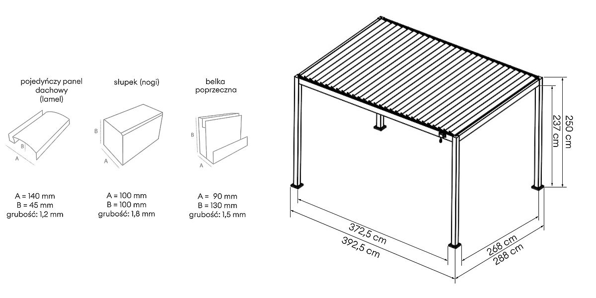 Fedezze fel a pihenés és a friss levegőn való időtöltés korlátlan lehetőségeit az Antilla kerti pergolával! Ez a szabadon álló, masszív alumíniumból készült szerkezet nemcsak eleganciát és funkcionalitást kölcsönöz kertjének, hanem teret is biztosít a pihenéshez és felejthetetlen pillanatokhoz szeretteivel. A pergola ideális helyszín a "szabadtéri" étkezésekhez, ahol a romantikus vacsorák, családi ebédek vagy ünnepségek új, varázslatos dimenziót nyernek. Az erő és elegancia kéz a kézben jár - az Antilla pergola alumínium szerkezete nemcsak modern dizájnnal bűvöl el, hanem kivételes tartóssággal is. Ellenáll a korróziónak, és akár 120 km/h sebességű szélnek és 60 kg/m² hóterhelésnek is ellenáll. Tetője mozgatható lamellákból áll, amelyek dőlésszöge az időjárási viszonyokhoz igazítható egy kényelmes kar segítségével. A panelek nemcsak a fény bejutását szabályozzák, hanem 100%-os vízállóságot is biztosítanak zárásuk után, hatékonyan védve az esőtől és a túlzott napsugárzástól. Pergoláink lamellái 100% alumíniumból készülnek – könnyűek, korrózióállóak és rendkívül tartósak. Az acél megoldásokkal ellentétben nem rozsdásodnak és nem terhelik a szerkezetet. Ezenkívül biztosítják az ideális légáramlást, kényelmes légkört teremtve a használat során. A pergola átgondolt szerkezete lehetővé teszi az esővíz hatékony elvezetését, és a rendszer összes eleme diszkréten rejtve van mind a négy láb belsejében, megőrizve az esztétikus megjelenést. Az Antilla bioklimatikus pergola rendelkezik a szükséges tanúsítványokkal és igazolásokkal, amelyek igazolják a legmagasabb szabványok teljesítését, így kiválóan alkalmas mind magánteraszokra és kertekbe, mind kereskedelmi helyszínekre, mint például éttermek és szállodai kertek. A pergola önálló összeszerelésre készült - a készletben minden szükséges eszközt megtalál, hogy saját pihenőoázisát létrehozza, és a lépésről lépésre szóló útmutatók egyszerűvé és kielégítővé teszik az összeszerelési folyamatot. Hogy pihenése még kellemesebb legyen, pergoláját kiegészítőkkel is felszerelheti felár ellenében. A könnyen tisztítható, fehér színű szövetfüggöny nemcsak további védelmet nyújt a nap ellen, hanem átlátszóságot is biztosít, könnyedség és szabadság érzetét keltve. Ha pedig átfogó védelemre vágyik, válassza a screen típusú rolót. Időjárásálló anyagból készült, véd az UV-sugárzástól, enyhe széltől és esőtől, valamint a rovaroktól, miközben kellemes árnyékolást biztosít. Eldöntheti, hogy a pergola hány falára és hogyan szeretné felszerelni a függönyöket vagy rolókat. Ehhez a konfigurátorban ki kell választania azok számát és méretét, amely a fal szélességéhez igazodik (372,5 és 268 cm). De ez még nem minden! Hogy elmerülhessen az este varázslatos hangulatában, válassza a hangulatvilágítást LED-del. Választhat a hagyományos, távirányítóval és vezérlődobozzal ellátott vagy az energiatakarékos napelemes világítás között, amely napelem és beépített akkumulátor segítségével működik.