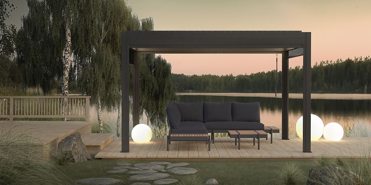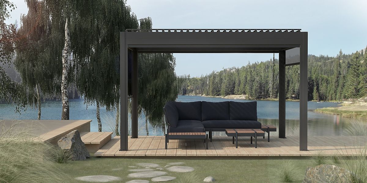 Szabadon álló Antilla alumínium kerti pergola, 4x3 m, bioklimatikus, mozgatható lamellák, antracit