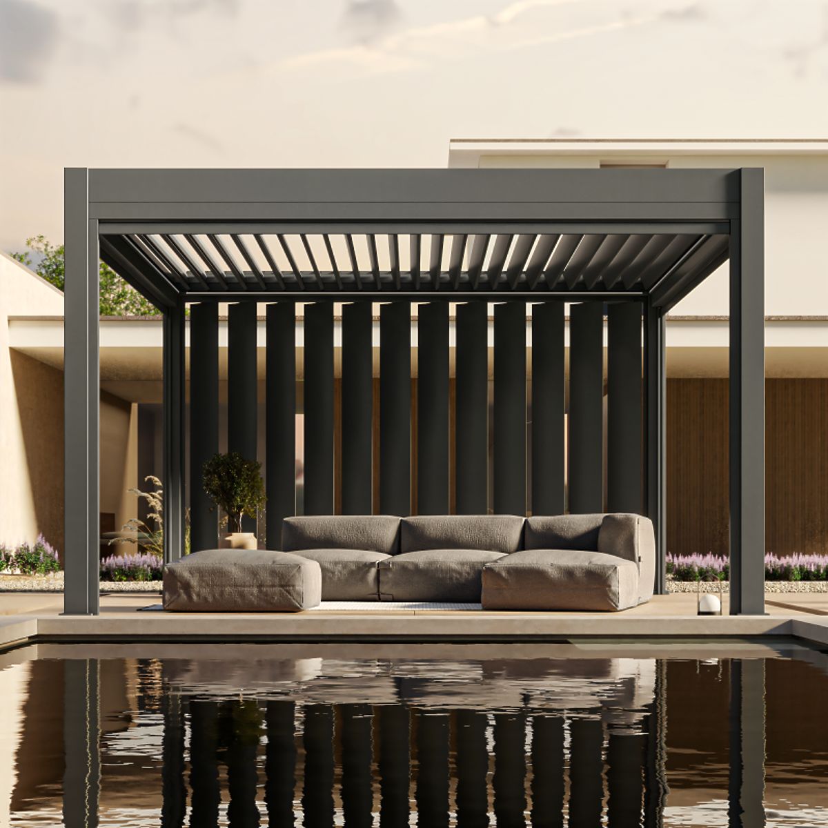 Önállóan álló Lumera kerti pergola alumíniumból, 4x4 m, bioklimatikus, LED világítás, elektromos