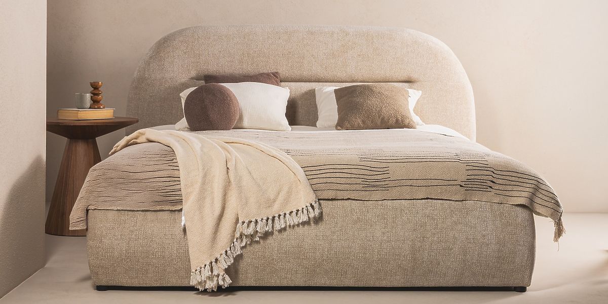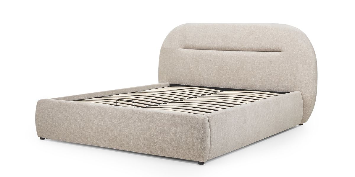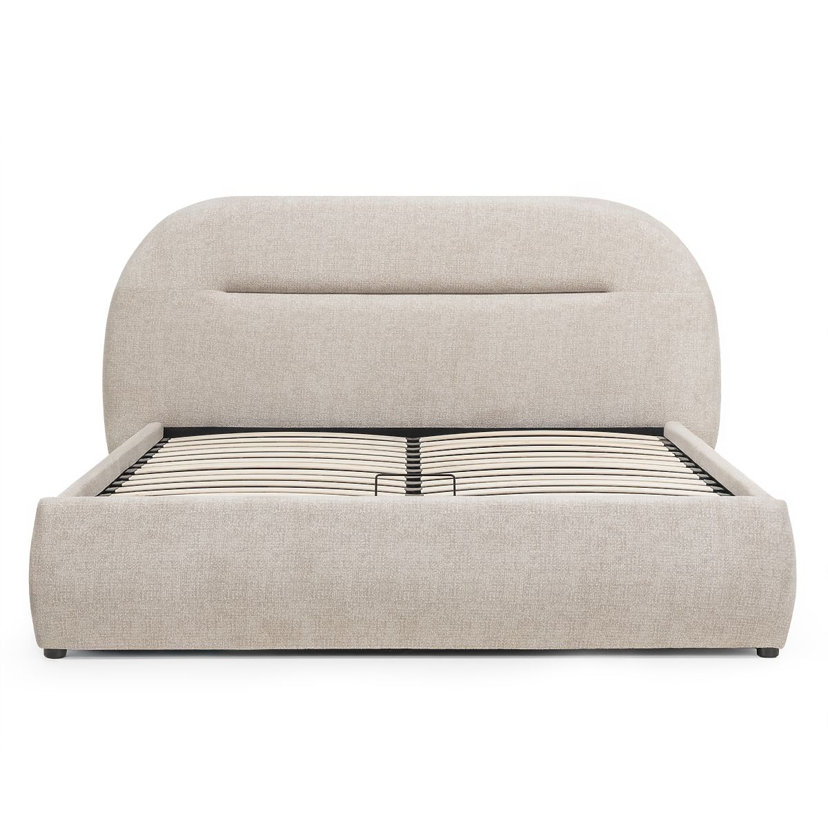 Lukahome.hu » Ágyak / Franciaágy / Ágyak 140x200 / Kárpitozott Luno ágy 140x200 cm, ráccsal és tárolóval, világos bézs, lekerekített
