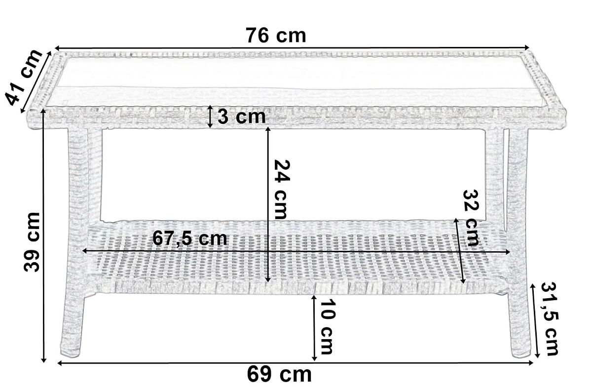 Asztallap mérete: 41 x 76 cm