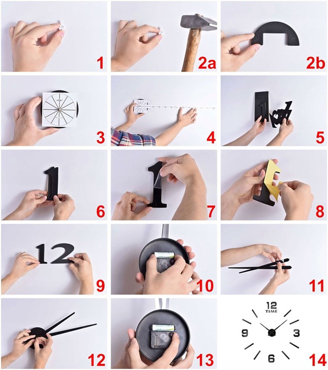 Az órák öntapadós szalaggal rögzíthetők. A szalag minden elem hátulján található.