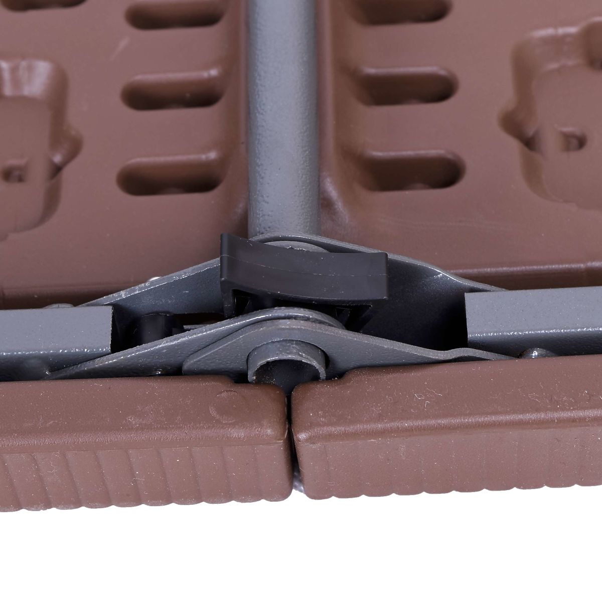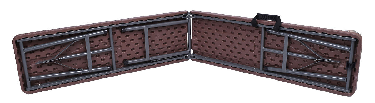 Összecsukható catering asztal. Nagyon praktikus és könnyű. Porszórt acél szerkezet. HDPE polietilén asztallap. Rattan mintázatú. Napfényálló. Egyedi kialakításának köszönhetően az egész szerkezet az asztallapba rejthető, kevés helyet foglal, és ergonomikus, könnyen hordozható bőröndöt képez.