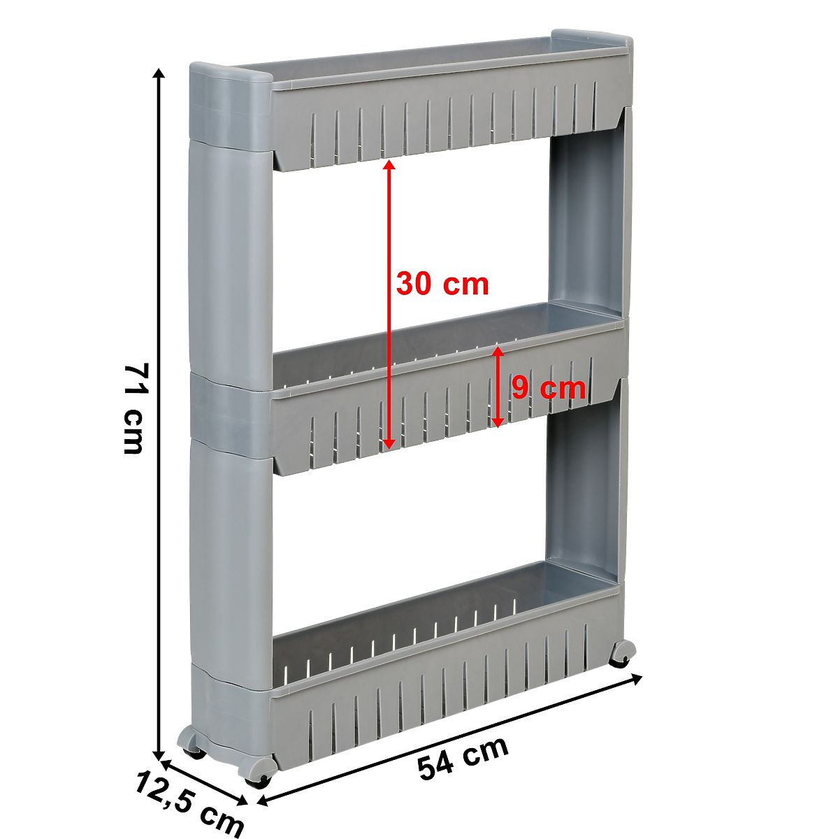 Mobil szekrény ideális keskeny helyekre, mint például a konyha vagy a fürdőszoba. Moduláris kialakítása tartós műanyagból készült, amely lehetővé teszi az igényekhez való könnyű alkalmazkodást – a polcok hozzáadhatók vagy eltávolíthatók. Kompakt méreteinek köszönhetően remekül illeszkedik a szekrény és a hűtőszekrény, a mosógép vagy más nehezen hozzáférhető helyek közé. A konyhai polc ideális fűszerek, konyhai kiegészítők, kozmetikumok, tisztítószerek és sok más szükséglet tárolására. Négy kerék biztosítja a mobilitást, így a fürdőszobai szekrény könnyen áthelyezhető oda, ahol szükség van rá.