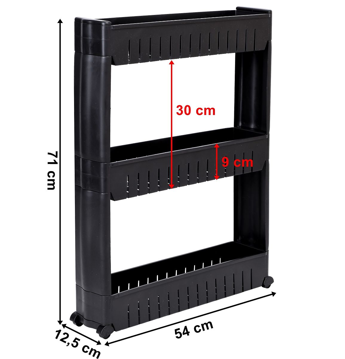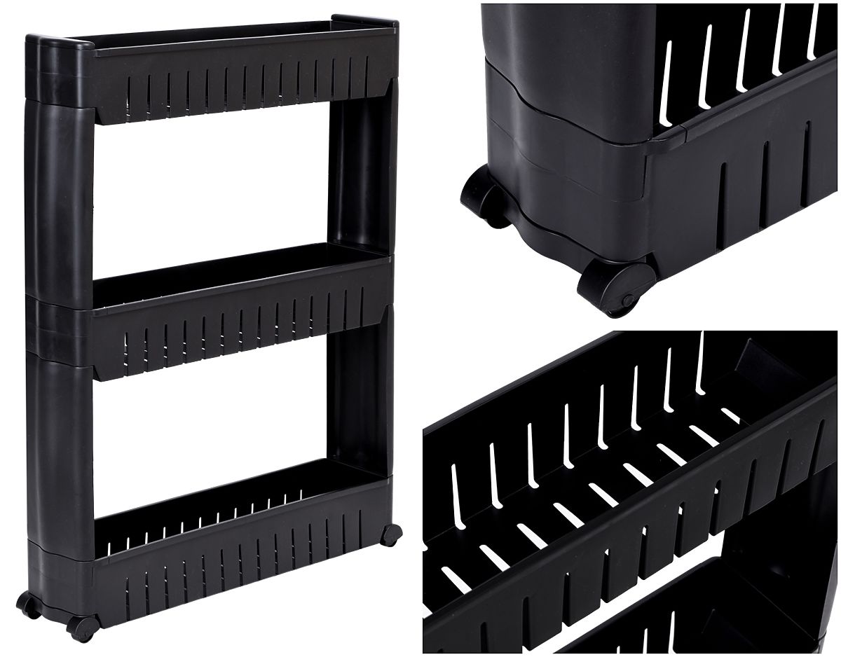 Mobil szekrény ideális keskeny helyekre, mint például a konyha vagy a fürdőszoba. Moduláris kialakítása tartós műanyagból készült, amely lehetővé teszi a könnyű testreszabást – a polcok hozzáadhatók vagy eltávolíthatók. Kompakt méreteinek köszönhetően remekül illeszkedik a szekrény és a hűtőszekrény, mosógép vagy más nehezen elérhető helyek közé. A konyhai polc ideális fűszerek, konyhai kiegészítők, kozmetikumok, tisztítószerek és sok más szükséges dolog tárolására. A mobilitást négy kerék biztosítja, amelyek lehetővé teszik a görgős fürdőszobai szekrény könnyű áthelyezését oda, ahol szükség van rá.