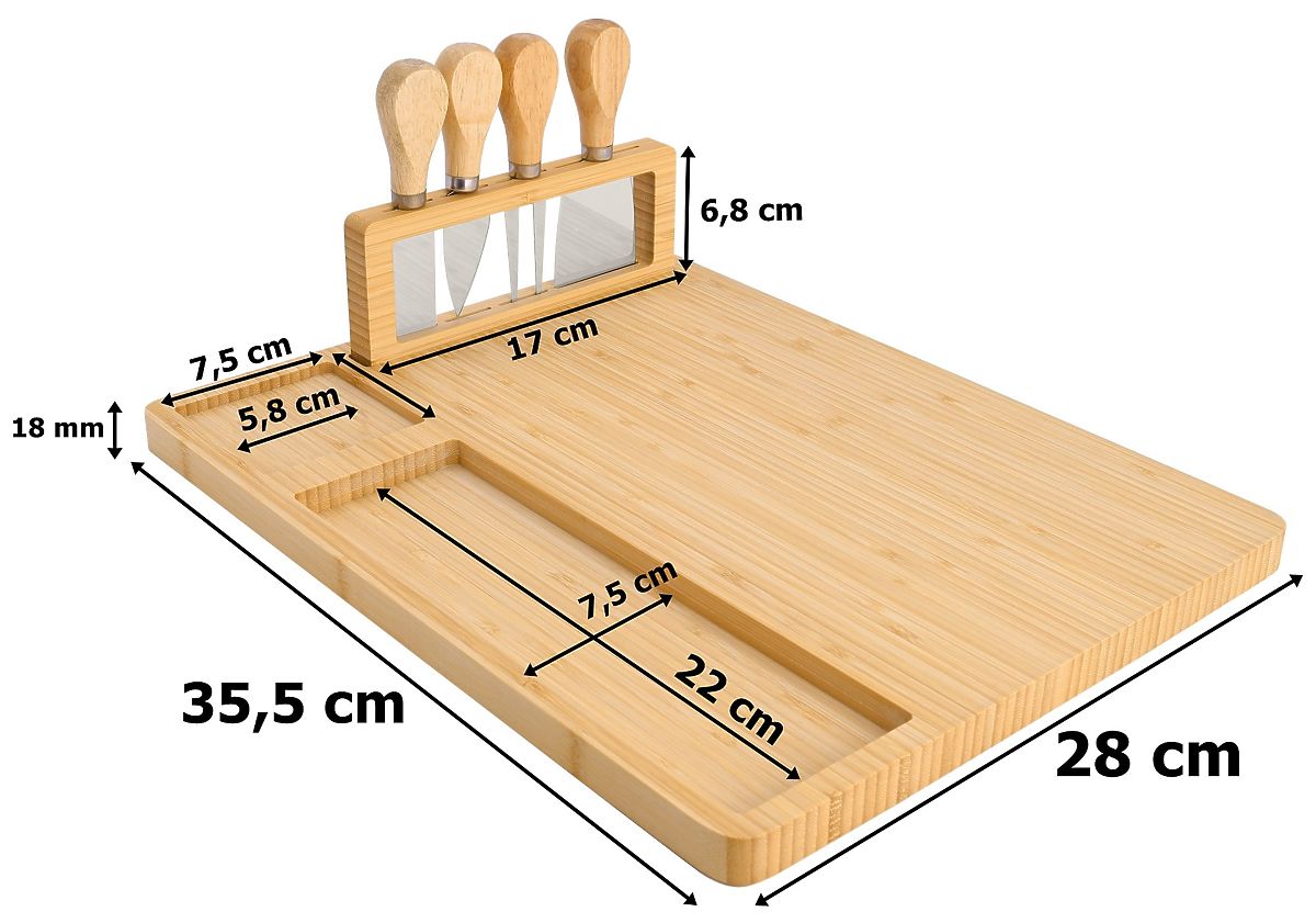 Tartalmaz: deszka + teljes rozsdamentes acél evőeszközkészlet állvánnyal