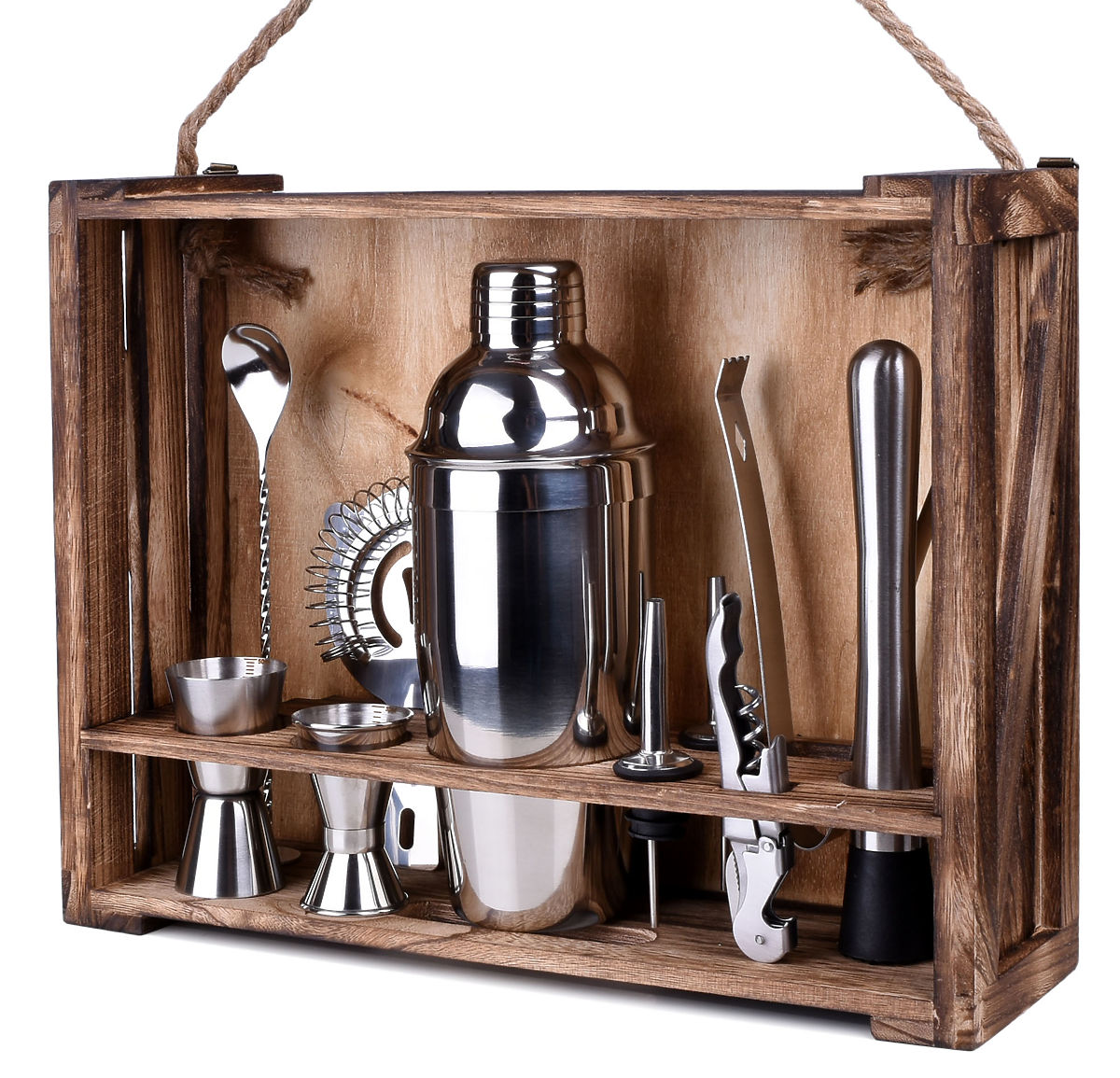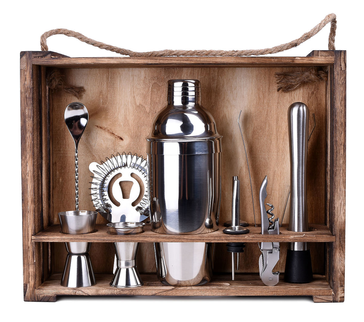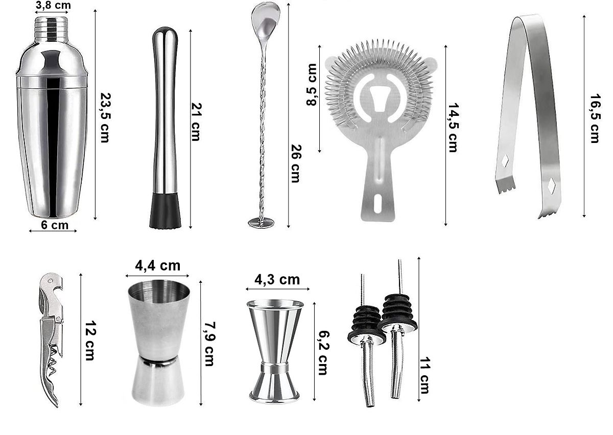 Rendez bulit és szeretnéd meglepni a vendégeidet? A bármixer készlet segít feldobni a hangulatot és elkészíteni az eredeti, érdekes italokat. A készlet minden eleme a legkiválóbb rozsdamentes acélból készült, így nem változtatja meg az italok ízét. A készlet összesen 11 elemet tartalmaz: 10 rozsdamentes kiegészítőt és egy karbonizált fenyőfából készült állványt.