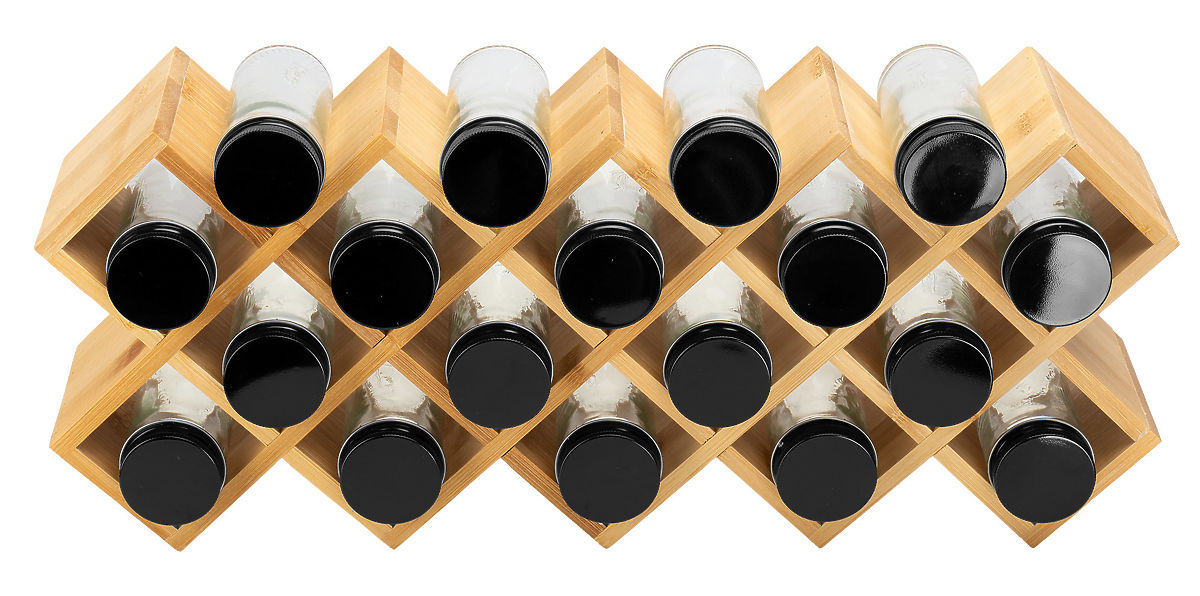 A 18 üvegből, amelyek vastag és tartós üvegből készültek, minden kedvenc fűszerét egy helyen tarthatja, ami megkönnyíti azok használatát főzés közben. Az üvegek könnyen tisztíthatók és átlátszó falakkal rendelkeznek, ami lehetővé teszi a tartalom könnyű megtekintését és a szükséges fűszer gyors megtalálását.