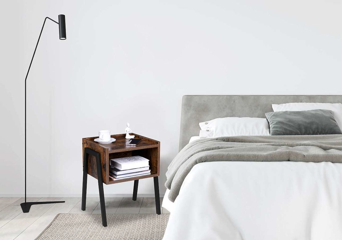 A Skive egy kivételes és praktikus éjjeliszekrény. A legmagasabb minőségű anyagokból készült, minden részletre odafigyelve. A porszórt acél és a laminált, antik tölgyet idéző lapok szilárd szerkezete remekül kiegészíti egymást, modern dizájnt kölcsönözve az éjjeliszekrénynek. A modell tökéletesen illeszkedik az eredeti berendezésű terekbe. Ideális a loft, ipari és vintage stílushoz. A Skive egy univerzális modell. Kompakt, átgondolt kialakításának köszönhetően például oldalsó asztalként is szolgálhat a kanapé mellett. A polc és a nagy nyílás gond nélkül elférnek kedvenc könyveink, magazinjaink és a kéznél tartandó tárgyak, mint például szemüveg vagy telefon.