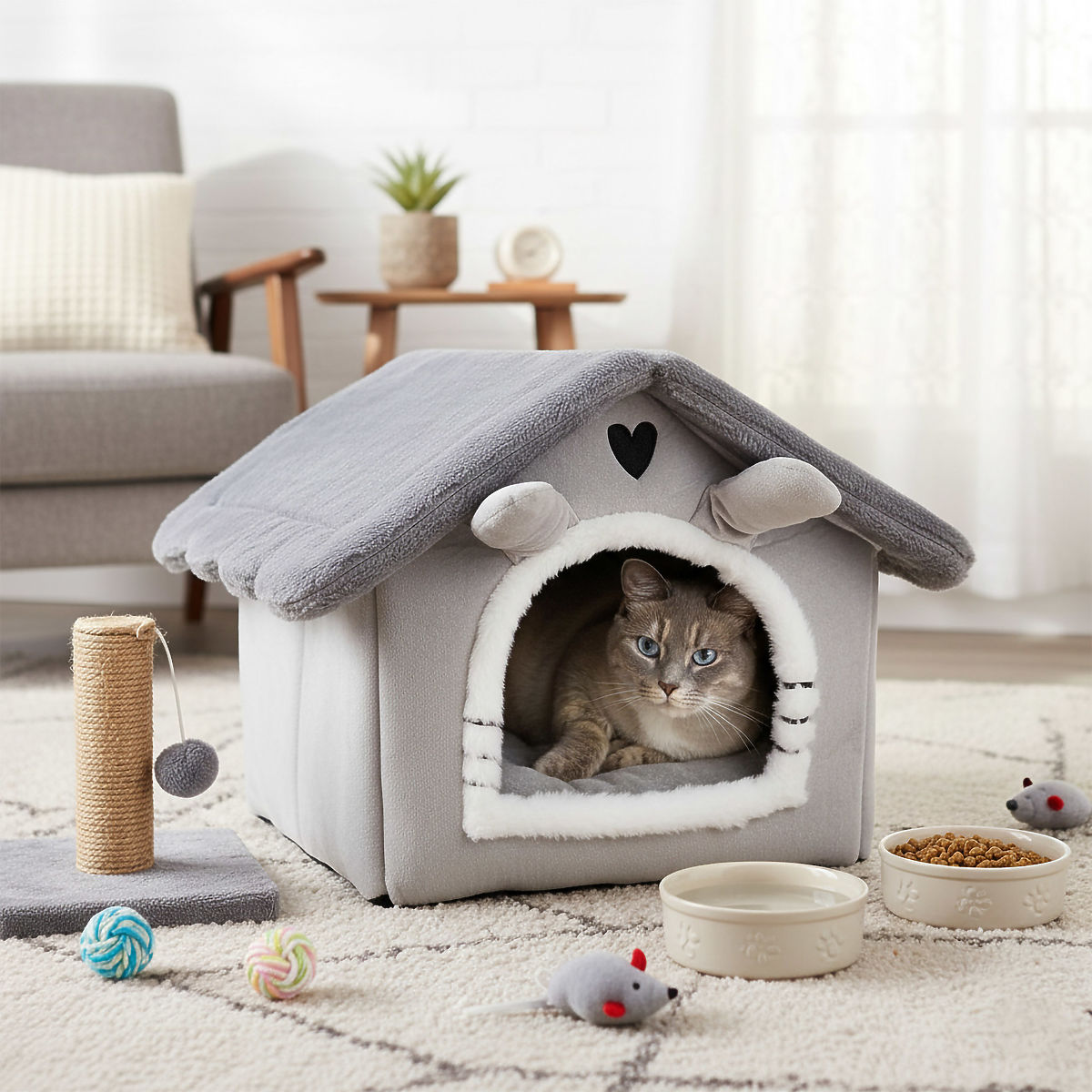 ✅ Plüss és otthonos: A kellemes tapintású anyag rendkívül kényelmessé teszi a házat a macska számára.