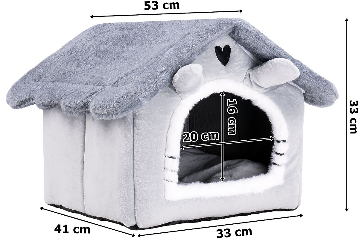 A ház plüss anyaga rendkívül puha és kellemes tapintású, ami biztosítja, hogy a macska kényelmesen és biztonságban érezze magát. Ezenkívül a plüss elegáns megjelenése stílust és meleget kölcsönöz minden belső térnek, ideális pihenőhelyet teremtve a háziállatodnak.
