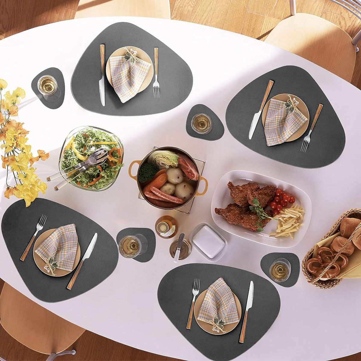 A Trival alátét készlet egy kiváló minőségű asztali alátét szett elegáns szürke színben, tartós PVC anyagból készült. Ez a készlet ideális megoldás, amely nemcsak megvédi az asztalát a foltoktól és sérülésektől, hanem eleganciát is kölcsönöz a belső térnek. A készlet tartalmaz 4 nagy alátétet, amelyek tökéletesen illeszkednek a tányérok alá, stabil és esztétikus alapot biztosítva az ételekhez. Emellett a készlet 4 kisebb alátétet is tartalmaz, amelyek ideálisak csészék és bögrék alá, megvédve az asztal felületét a forró italok okozta esetleges károsodástól. A Trival alátét készlet nemcsak az asztalát óvja, hanem annak megjelenését is gazdagítja.