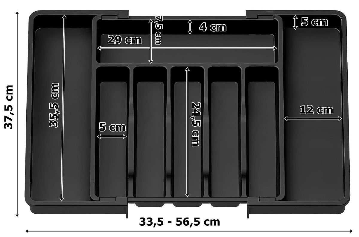 A Gockowiak márkájú Garfo rendező funkcionális kiegészítő minden konyhába, amely segít rendet tartani a fiókokban. Kihúzható kialakításának köszönhetően tökéletesen igazítható a fiók szélességéhez, elkerülve a szabad helyeket vagy a túl szoros illeszkedést. Tartós PP (polipropilén) anyagból készült, ellenáll a mindennapi használatnak. A rendező 6 rekeszt kínál az alapvető evőeszközöknek (kések, villák, kanalak, kiskanalak), és kihúzva további 2 rekeszt a konyhai kiegészítőknek. Minden konyhába illik!