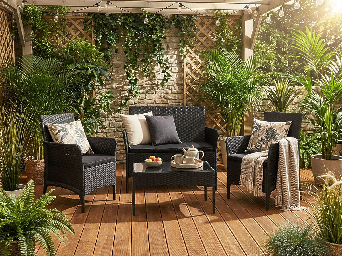 CAMELIA kerti bútor szett fekete fekete párnákkal