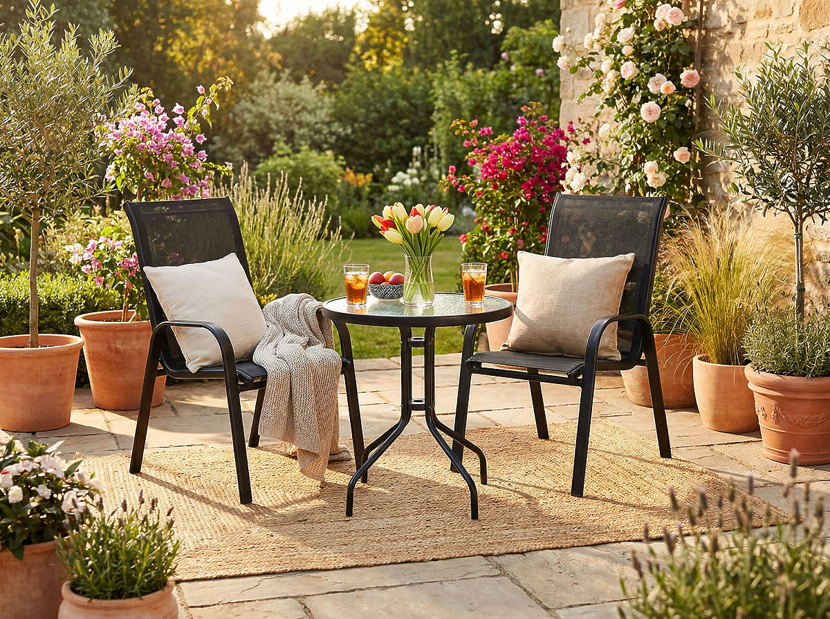 Modell: PALMA | Készlet tartalma: asztal + 2 szék | Használat: erkély, terasz, kert