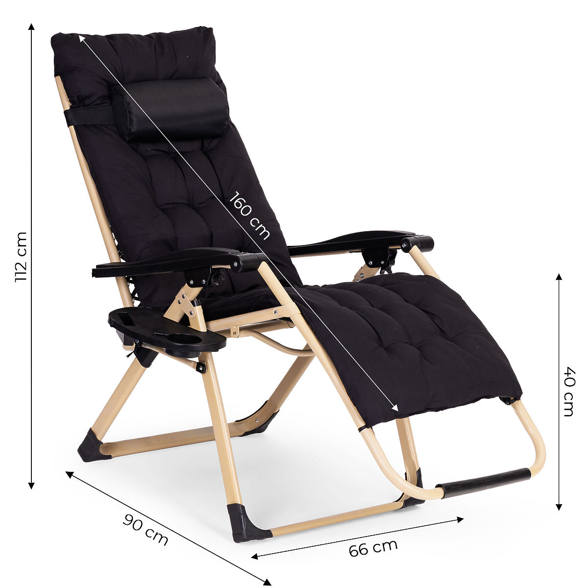 Lukahome.hu » Kerti bútorok / Kerti nyugágyak / Kerti strandnyugágy párnával és állítható háttámlával, fekete arany keret, MultiGarden