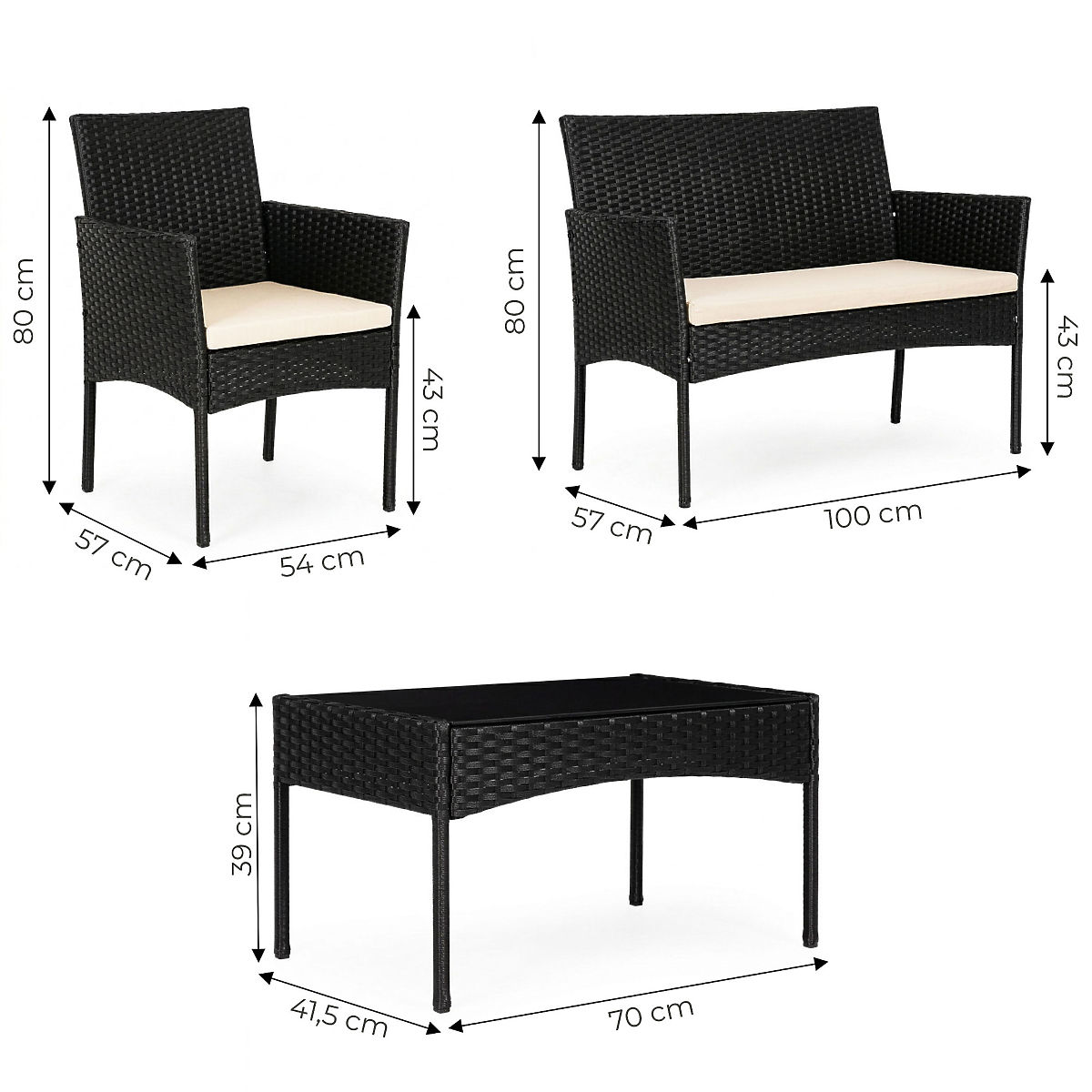 A kerti bútor szett ideális megoldás egy kényelmes szabadtéri pihenőzóna kialakítására. Kiválóan alkalmas családi összejövetelekhez, grillezéshez vagy esti pihenéshez egy fárasztó nap után. Remek hely a reggeli kávéhoz, laptopos munkához vagy egy kedvenc könyvvel eltöltött pillanathoz. Univerzális jellege lehetővé teszi, hogy a szett a kertben, teraszon vagy erkélyen is megállja a helyét, kényelmet és funkcionalitást kínálva minden térben.