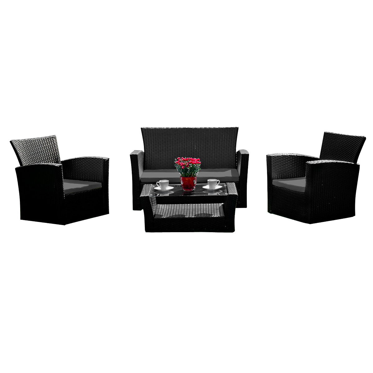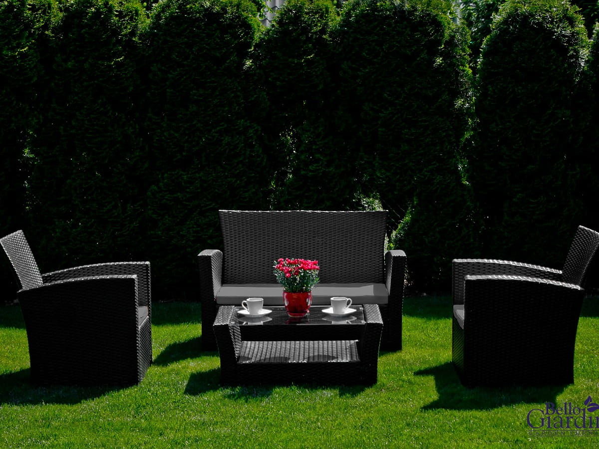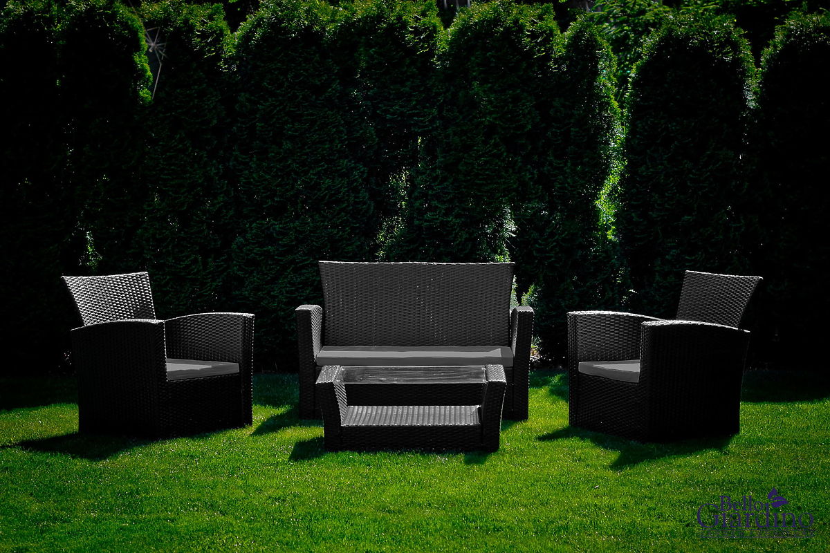 Lukahome.hu » Kerti bútorok / Kerti szettek / Kerti bútor technorattanból (kanapé 123cm, 2 x fotel + asztal) UNICO fekete