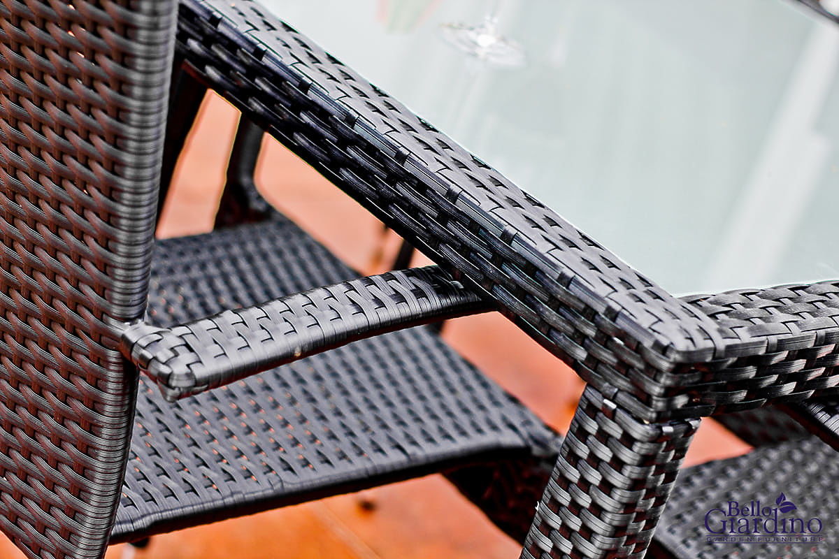 Az AVVICENTE kerti bútor az elegancia és a funkcionalitás megtestesítője, azok számára tervezve, akik luxust szeretnének vinni kertjükbe vagy teraszukra anélkül, hogy feláldoznák a praktikusságot. Az asztal könnyű szerkezetének köszönhetően ez a szett lehetővé teszi a könnyű áthelyezést, így gyorsan változtatható a kültéri tér elrendezése az aktuális igények vagy alkalmak szerint. Kiváló minőségű szintetikus rattanból készült, az AVVICENTE kerti bútor nem igényel bonyolult karbantartást, és ellenáll az eső, az intenzív napsugárzás és a fagy kedvezőtlen hatásainak. Az AVVICENTE bútor gyönyörű megjelenése, kényelmes székeivel és az anyag tartósságával ideális feltételeket teremt a friss levegőn való pihenéshez, és kényelmes környezetet biztosít a hosszú nyári estékre. Kiváló választás azok számára, akik technorattan kerti bútort keresnek, amely hosszú évekig szolgál, miközben megőrzi esztétikáját és funkcionalitását. Az AVVICENTE szett színe: fekete – egységes, finoman csíkozott szerkezet (az asztal és a székek kissé eltérnek a fonás szerkezetében – lásd a termék galériájában található fotókat)