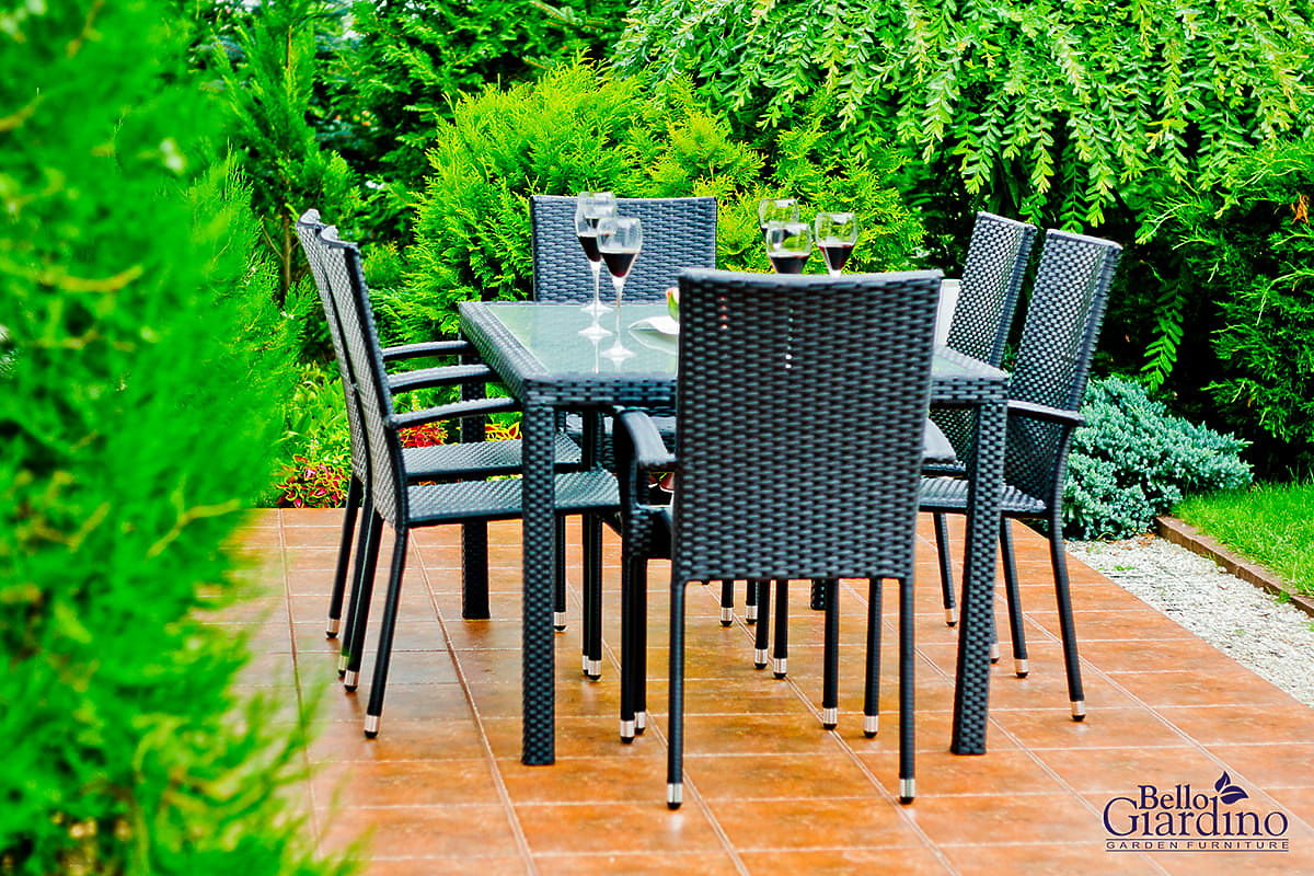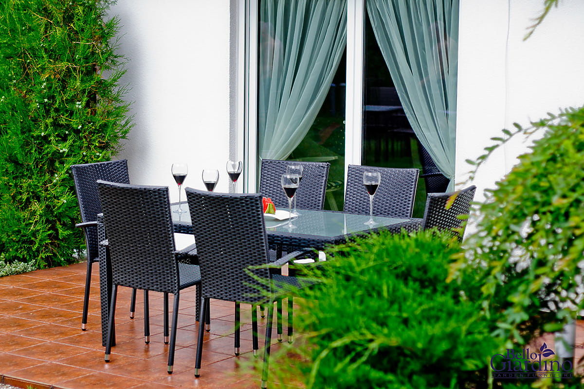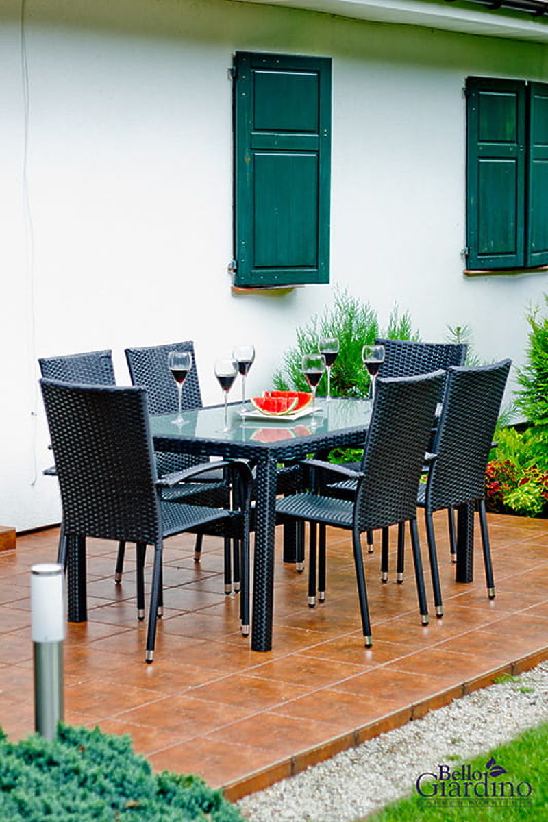 Lukahome.hu » Kerti bútorok / Kerti szettek / Technorattan étkező bútor szett (asztal 150×90 cm + 6 szék) AVVICENTE, fekete
