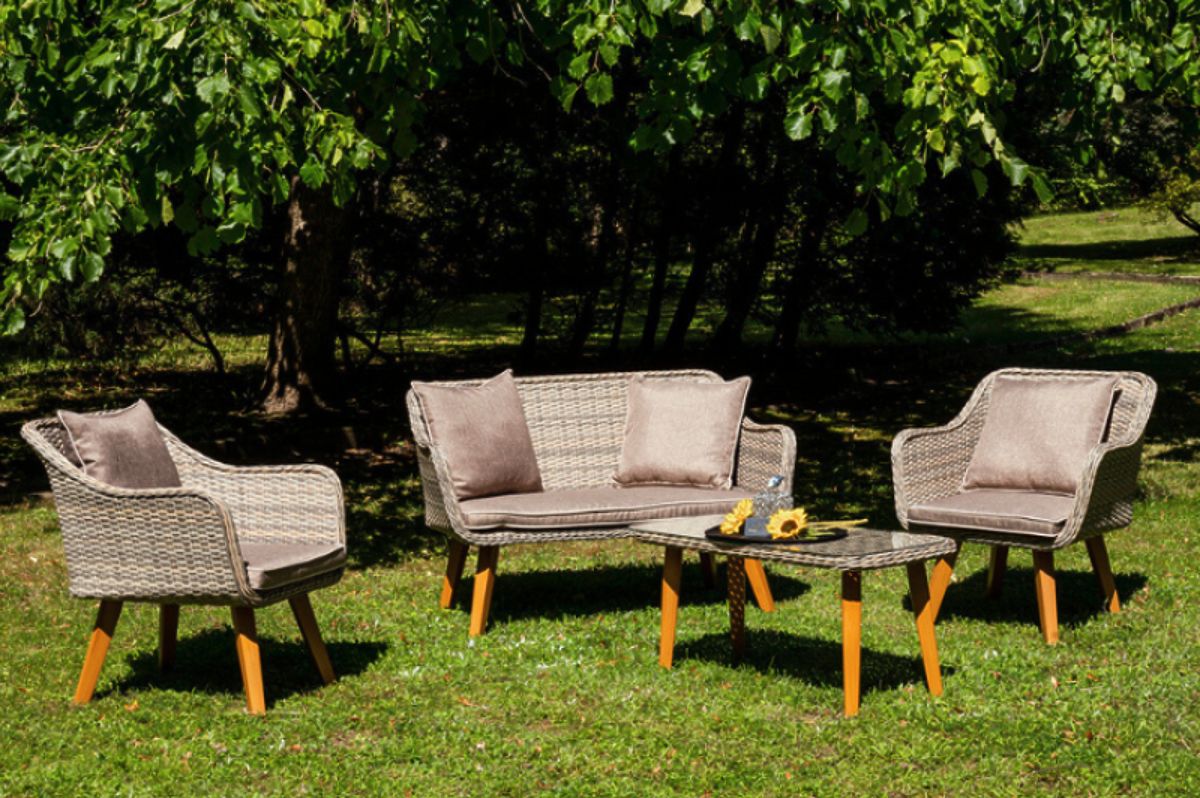 Elegáns kerti szett technorattanból (2 x kényelmes fotel, kanapé + asztal) LARGO szürke, nem egysége
