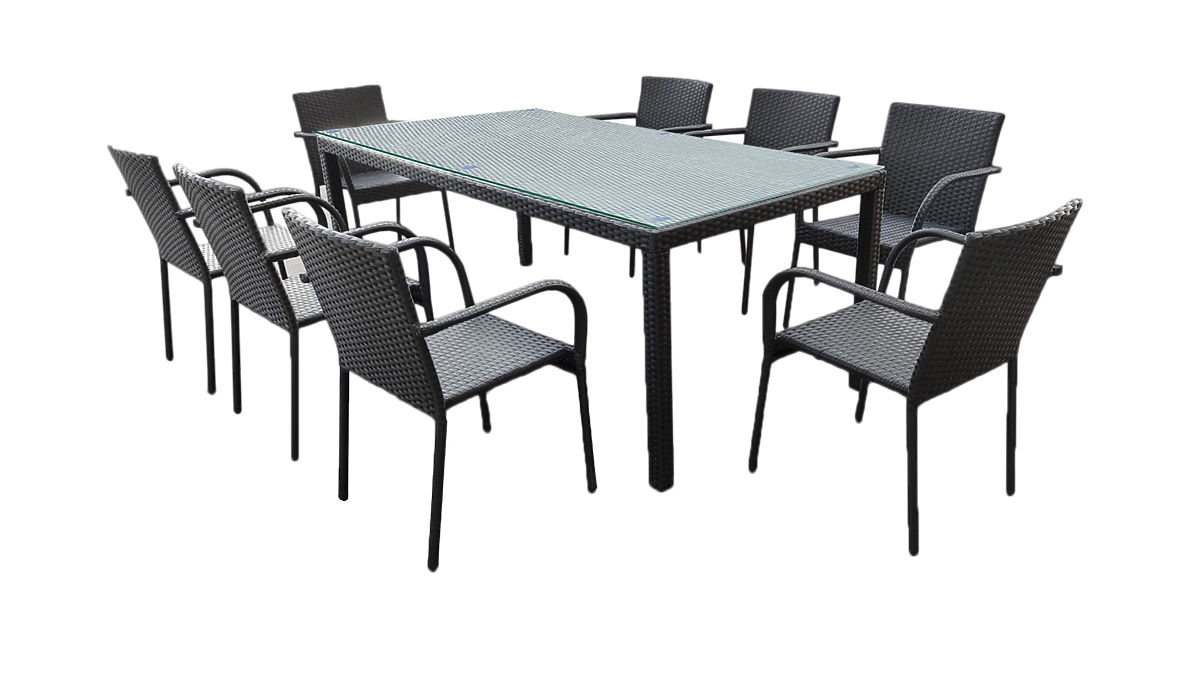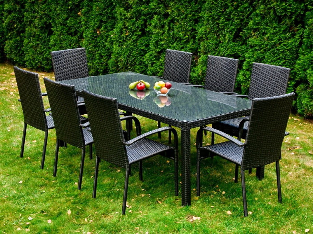 Nagy étkezőgarnitúra technorattanból (asztal 200x100cm + 8 szék) SOTTILE fekete
