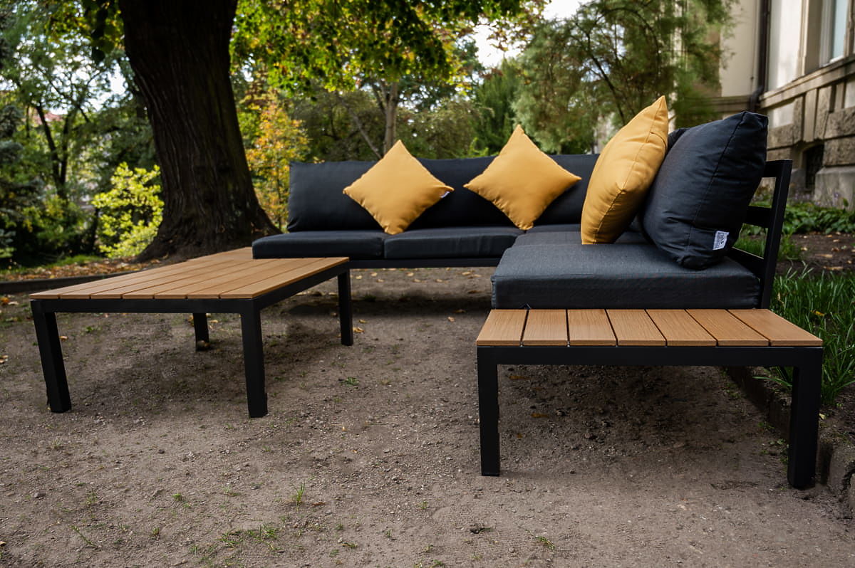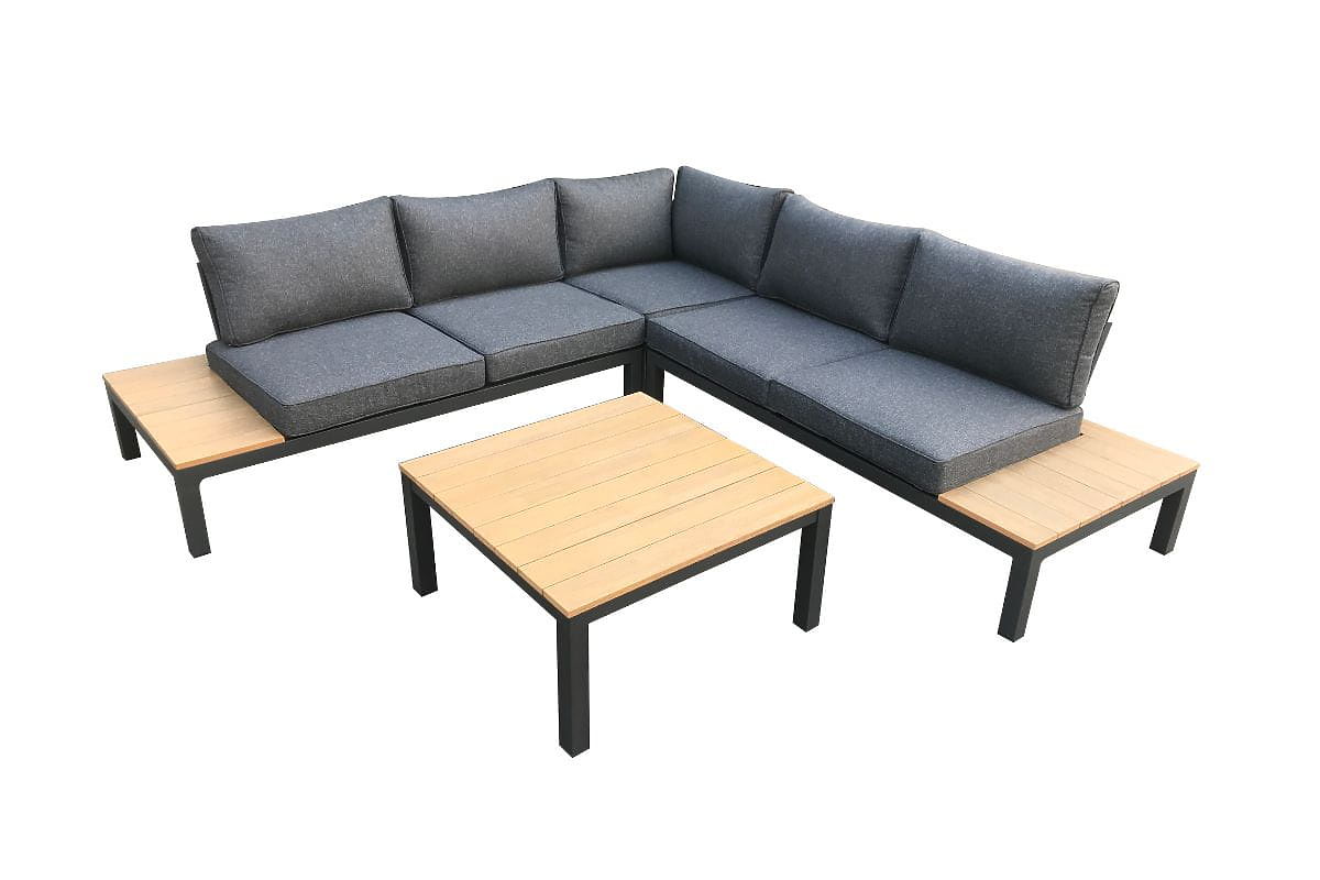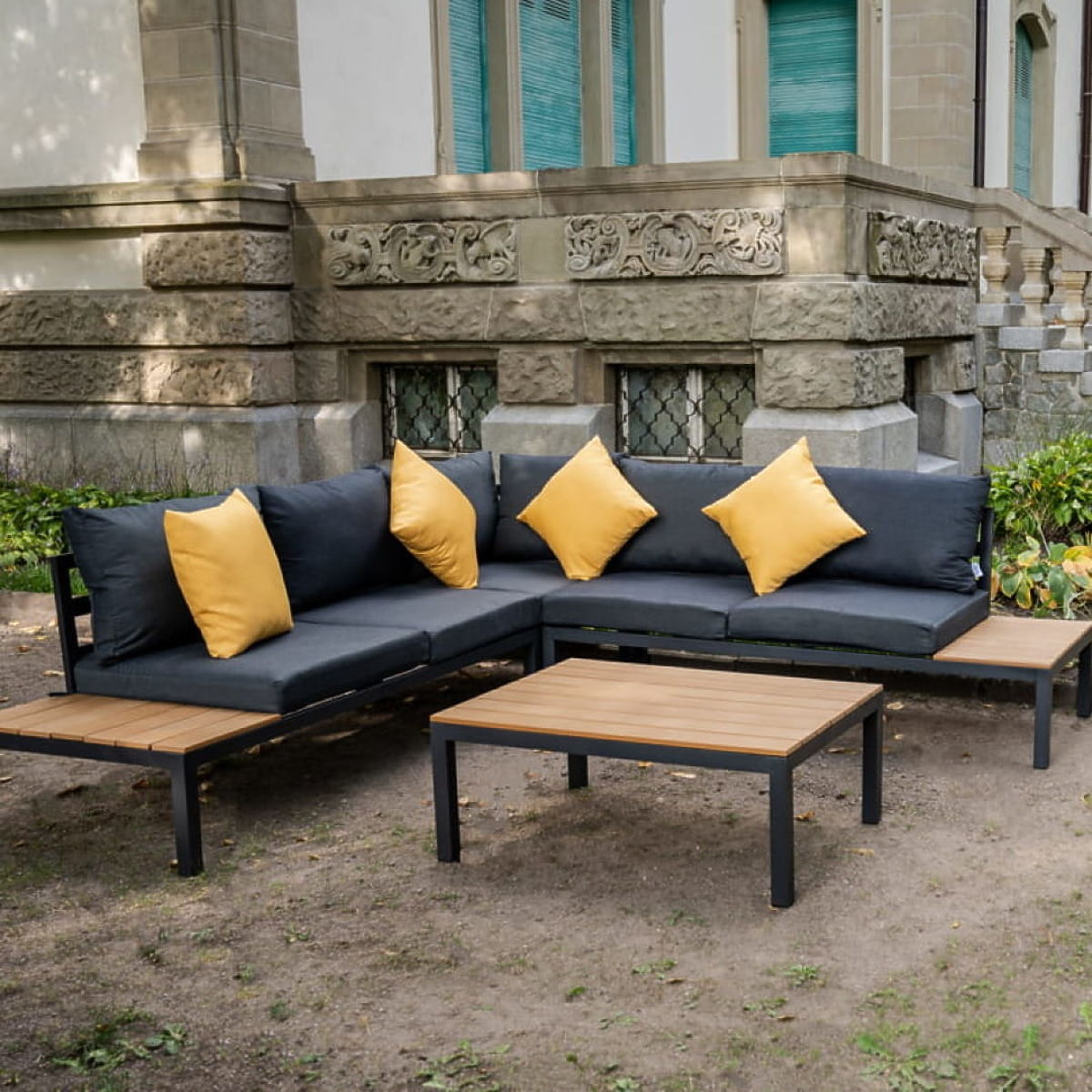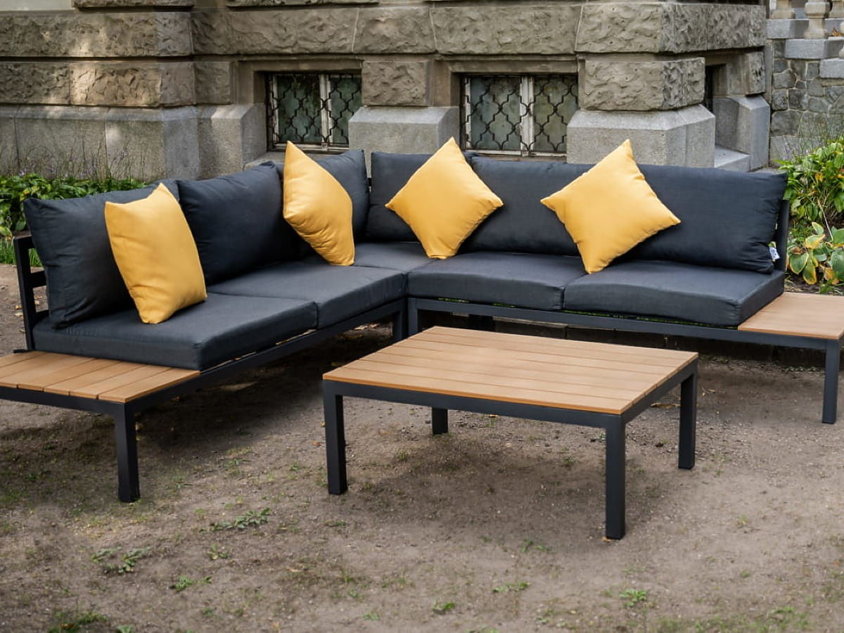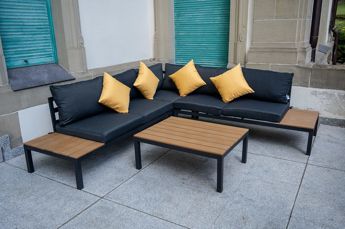 Nagy alumínium sarokszett asztallal MASSIMO fekete
