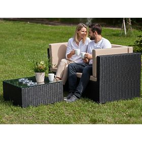 Kétszemélyes kanapé technorattan asztallal TINTO fekete