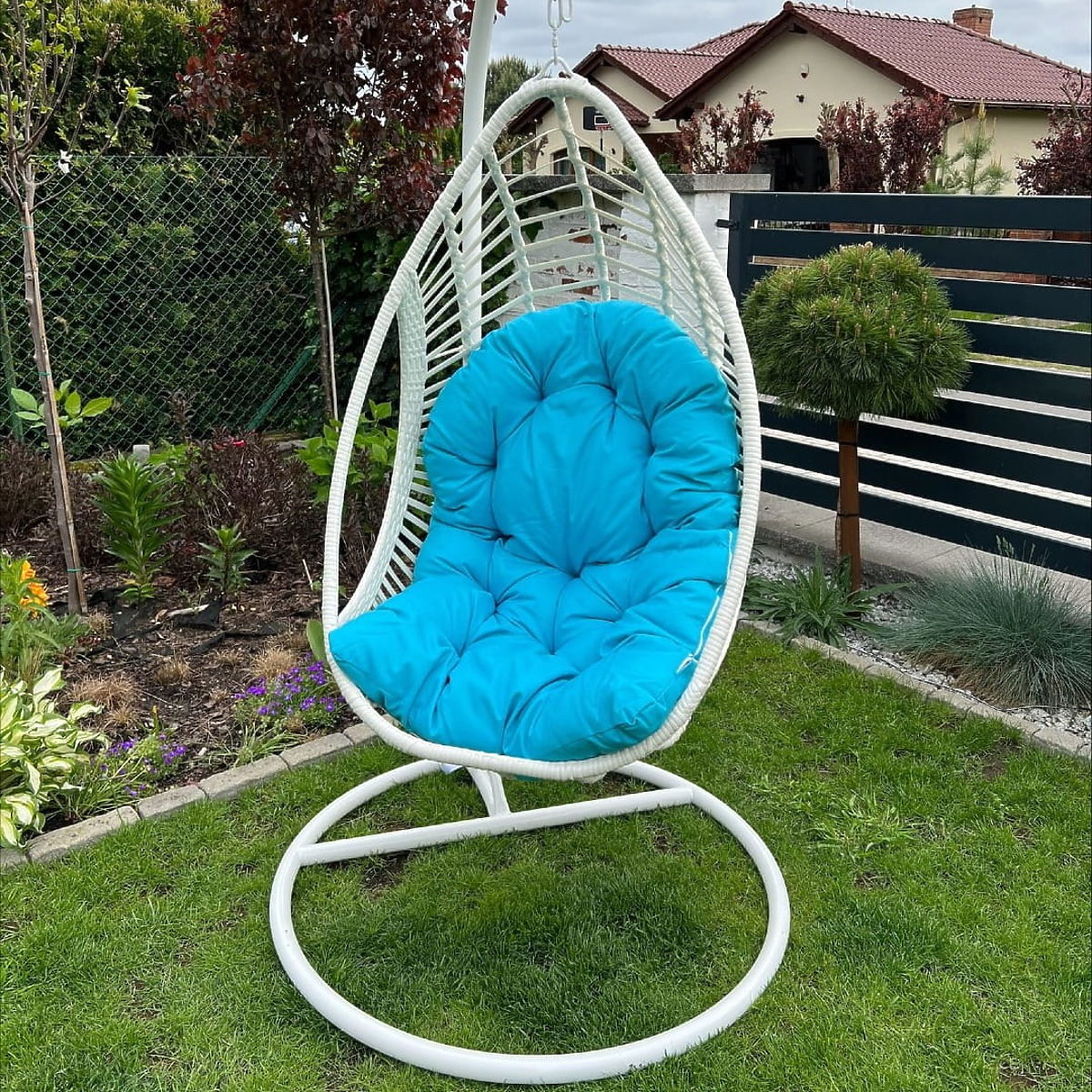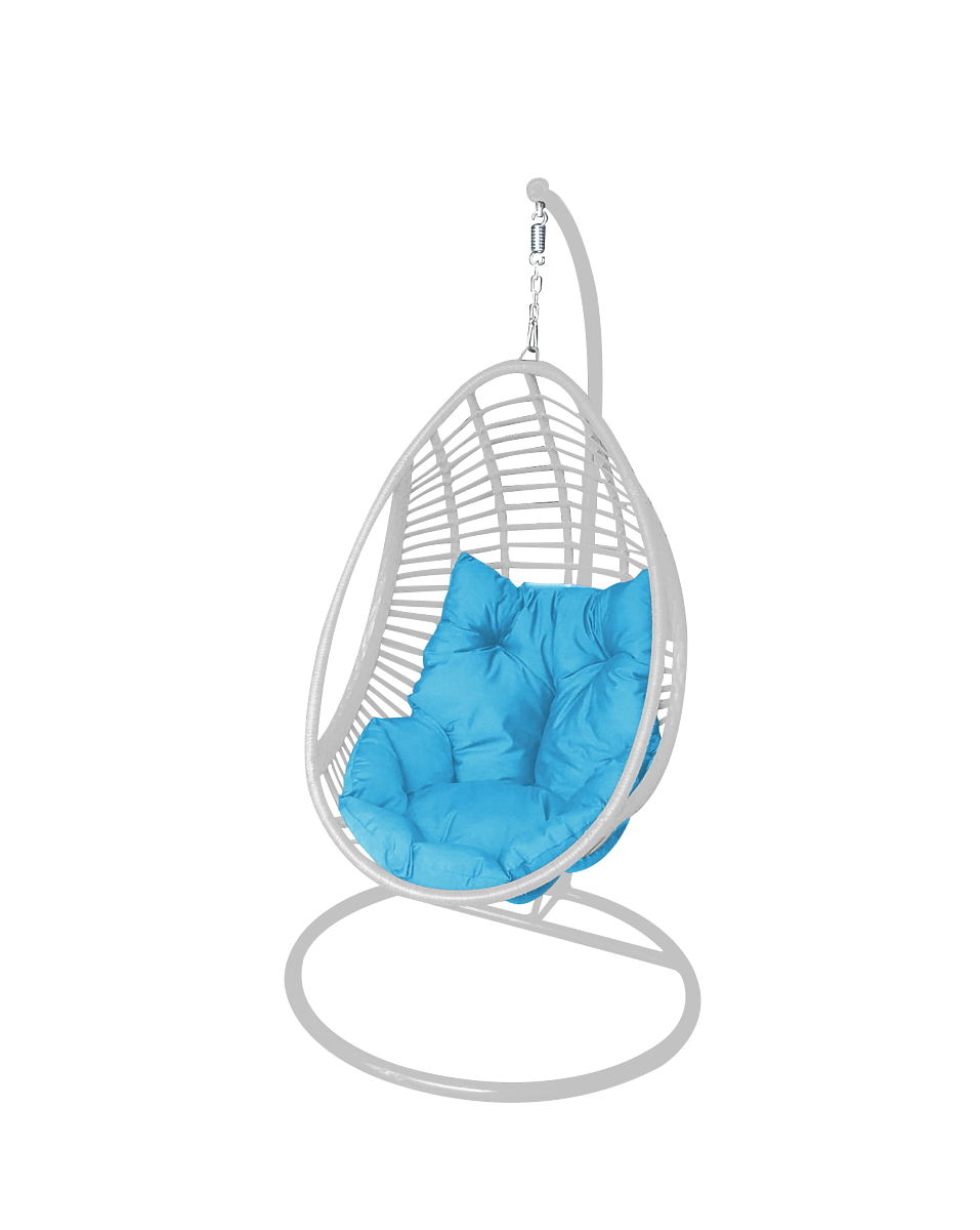 BELLISSIMO függőszék (szék + keret) fehér technorattanból kék párnával, GRA huzat