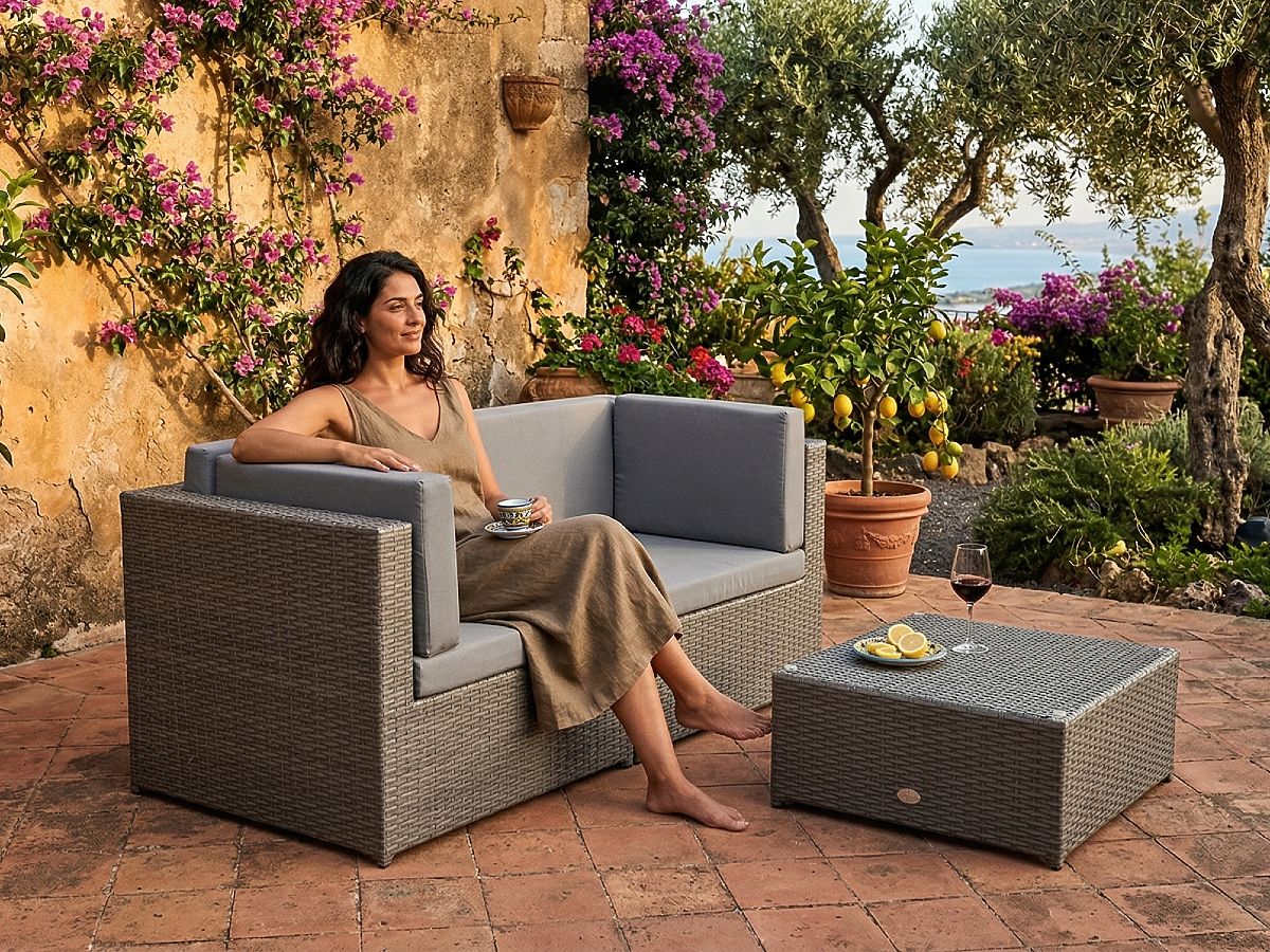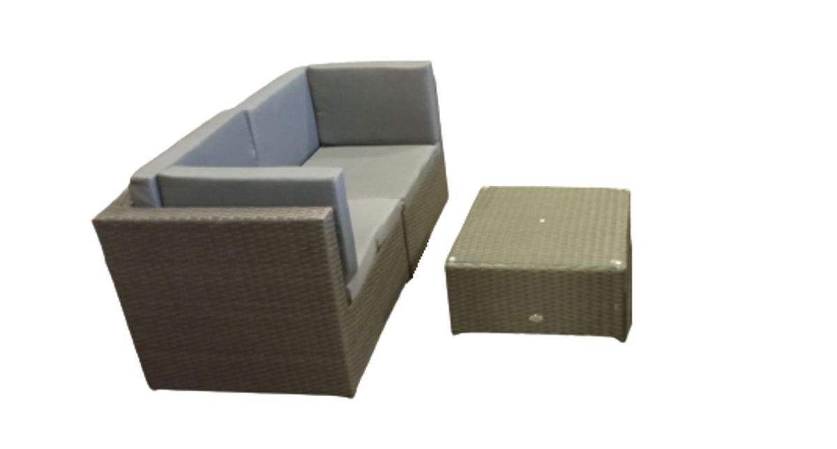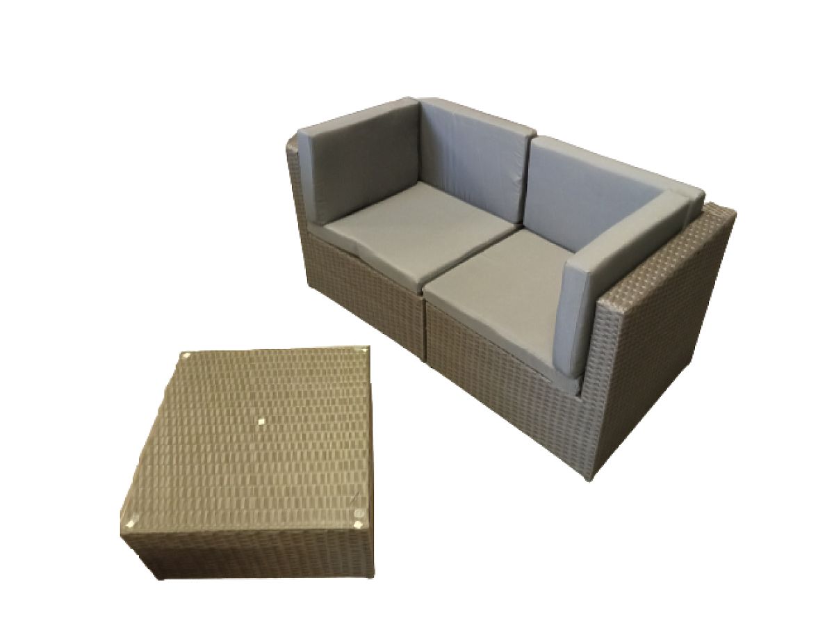 Kis terasz szett technorattanból (kanapé+asztal) TINTO szürke