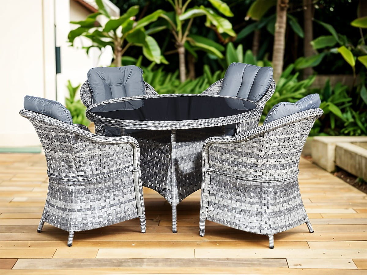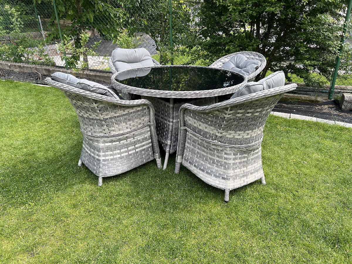 Technorattan asztali bútor szett (4 szék + kerek asztal) MODERNO világosszürke