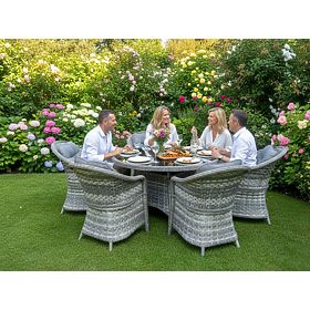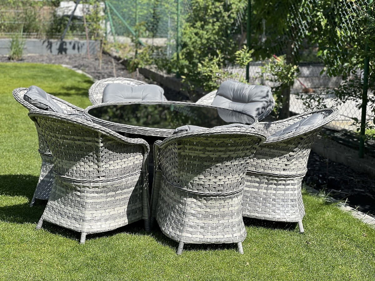 Nagy étkezőgarnitúra technorattanból (6 szék + asztal) MODERNO világosszürke