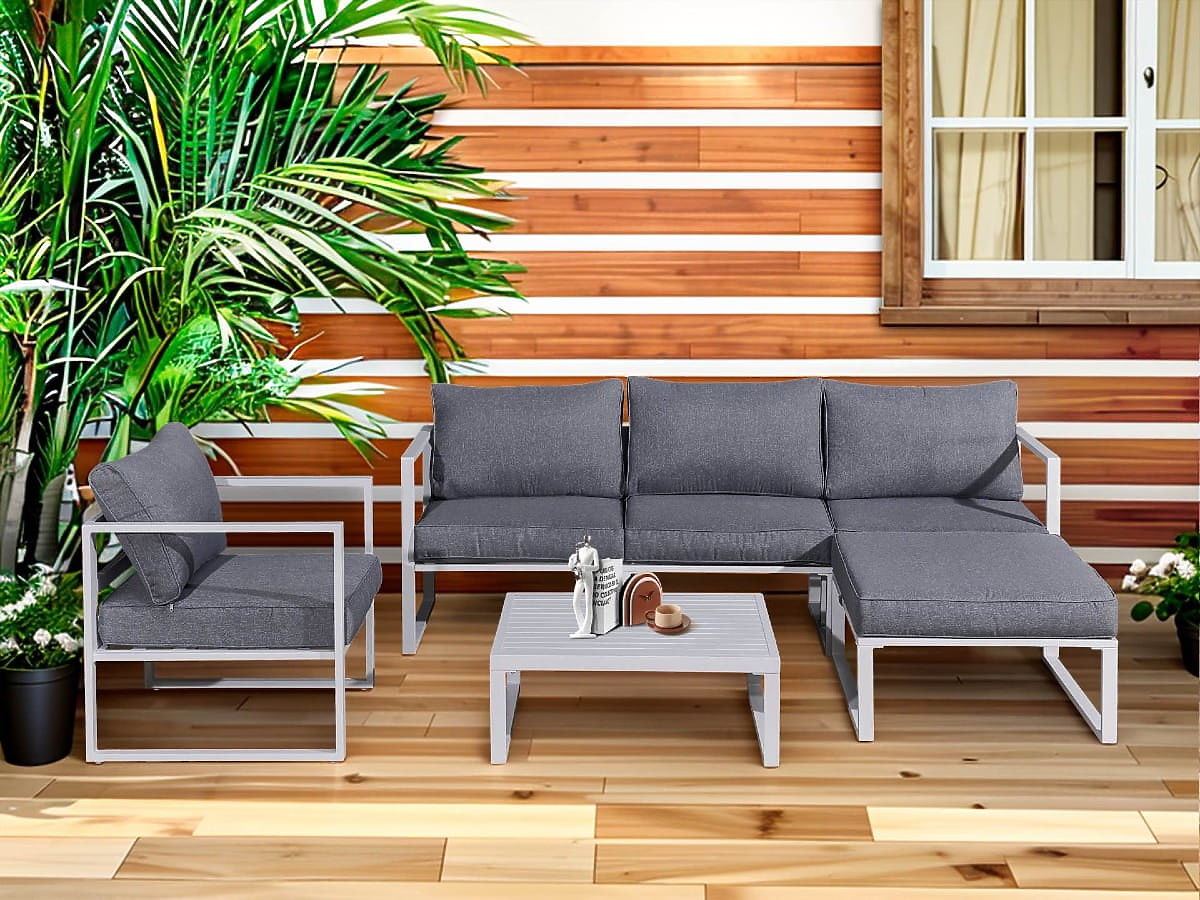Alumínium terasz bútor szett (204 cm kanapé, fotel, puff + asztal) MOSTRARE Fehér