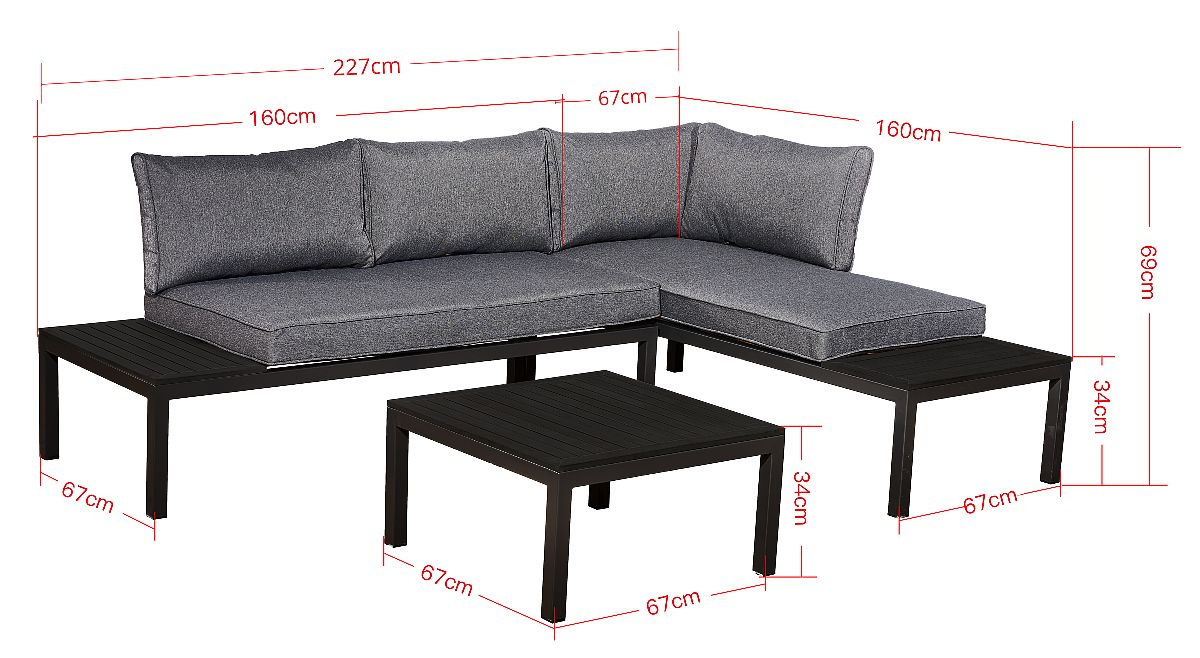 A VENTO a tartósság és a kényelem befektetése. Magas minőségű, időjárásálló acélból készült, ez a szett hosszú éveken át szolgálja majd Önt. A puha párnák és az ergonomikus forma kényelmet biztosítanak a pihenéshez. Praktikus megoldásokat értékelők számára ideális választás. VENTO szett színe: fekete Párnák színe: szürke Bútor szerkezete: acél A sarokkanapé moduláris, ami lehetővé teszi bármilyen konfigurációban való beállítását (bal/jobb). A szett 3 elemből áll: 2 x oldalsó modul (jobb és bal): szélesség: 160 cm mélység: 67 cm magasság: 69 cm 1 x asztal: hossz: 67 cm szélesség: 67 cm magasság: 34 cm A szürke párnák az ülőfelületekre és háttámlákra a szett részei (2 db az ülőfelületekre, 4 db a háttámlákra). Az ülőpárnák vastagsága: 8 cm. Képzelje el a kerti bútort, amely minden szempontból felülmúlja elvárásait – a tartósságtól a dizájnig. Ez a BELLO GIARDINO, ahol minden részlet számít, és a luxus találkozik a funkcionalitással: Maradandó minőség: Szintetikus rattanunk garantálja, hogy a bútor évekig megőrzi szépségét és tartósságát. Időjárásállóság: Bútoraink a legkeményebb időjárási körülményekkel is szembenéznek, a perzselő naptól a fagyos telekig, és mindig szépek maradnak. Luxus kényelem: Vastag, puha párnák hívogatnak a pihenésre, olyan kényelmet kínálva, amit máshol nehéz megtalálni. Könnyedség és szilárdság: Az alumínium szerkezet a legjobbat egyesíti mindkét világból – könnyű, de rendkívül stabil. Dizájn, ami lenyűgöz: Bútoraink minden eleme esztétikára és funkcionalitásra lett tervezve, hogy bármilyen környezetbe illeszkedjen. Legyen Ön a minimalizmus kedvelője, vagy értékeli a gazdag, elegáns elrendezéseket, bútoraink megfelelnek az elvárásainak, túllépve a szokásos funkcionalitás és esztétika határain. Biztosítjuk, hogy még a legellenállóbb vásárlók sem tudnak ellenállni a BELLO GIARDINO által kínált kényelemnek és stílusnak. Tegye kertjét, teraszát vagy erkélyét a relaxáció és elegancia oázisává, amit mindig is szeretett volna. Ne várjon, fedezze fel a BELLO GIARDINO-t még ma, és alakítsa át kültéri tereit azzá a hellyé, amiről mindig is álmodott.