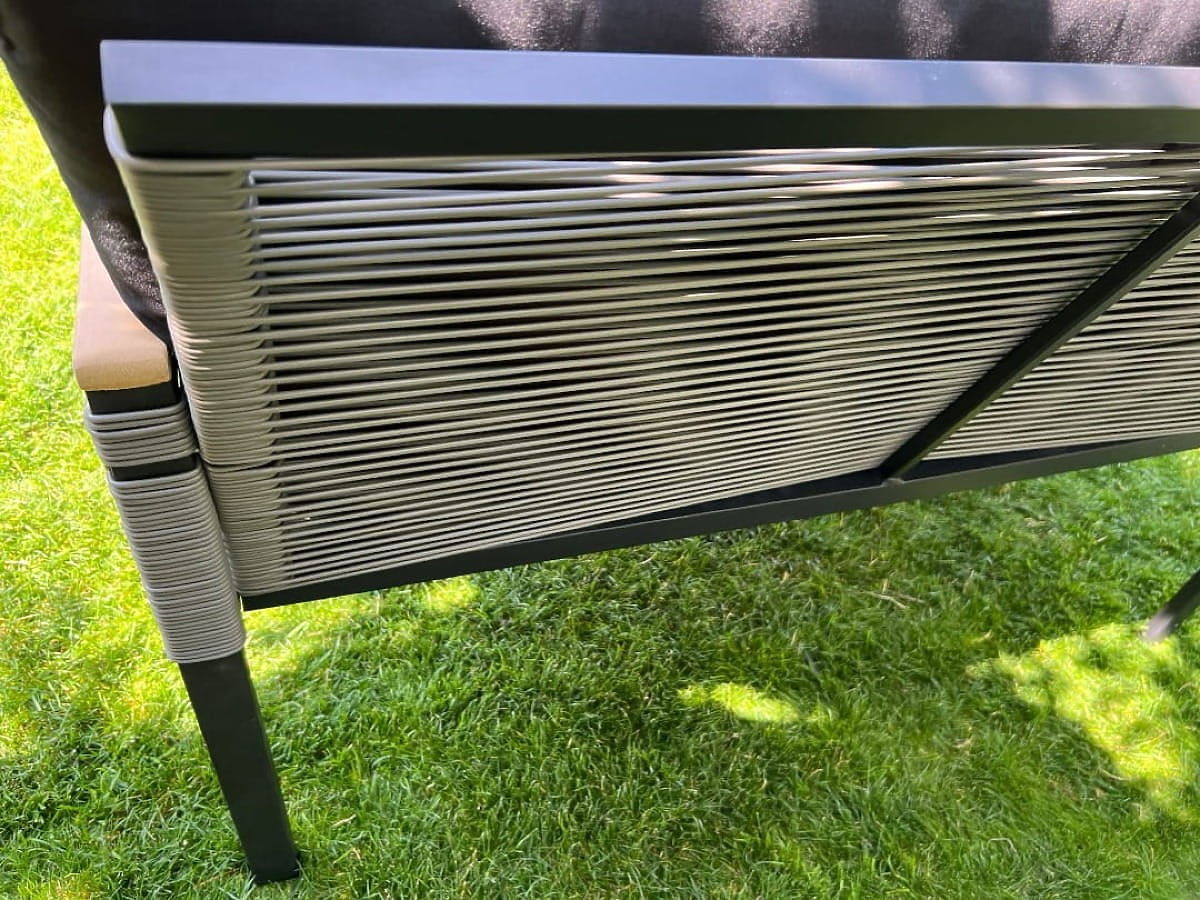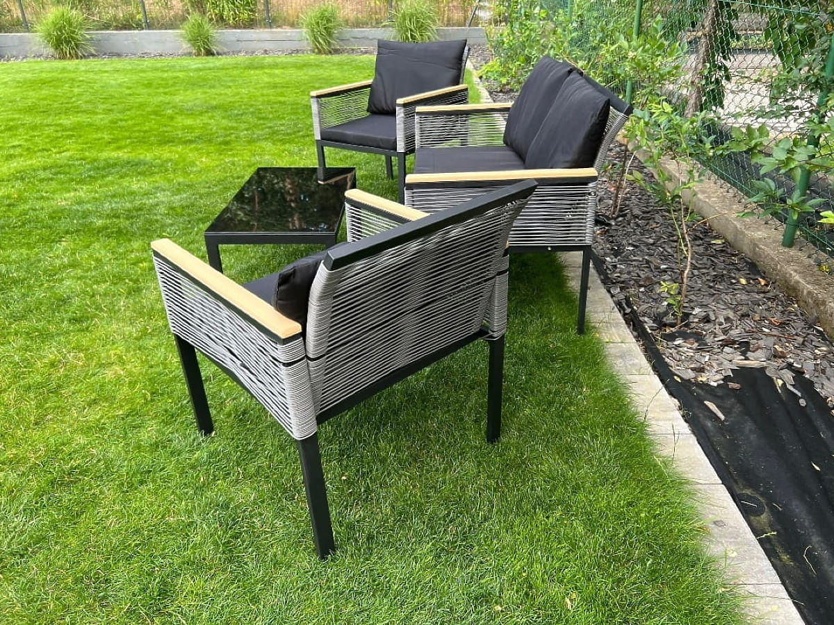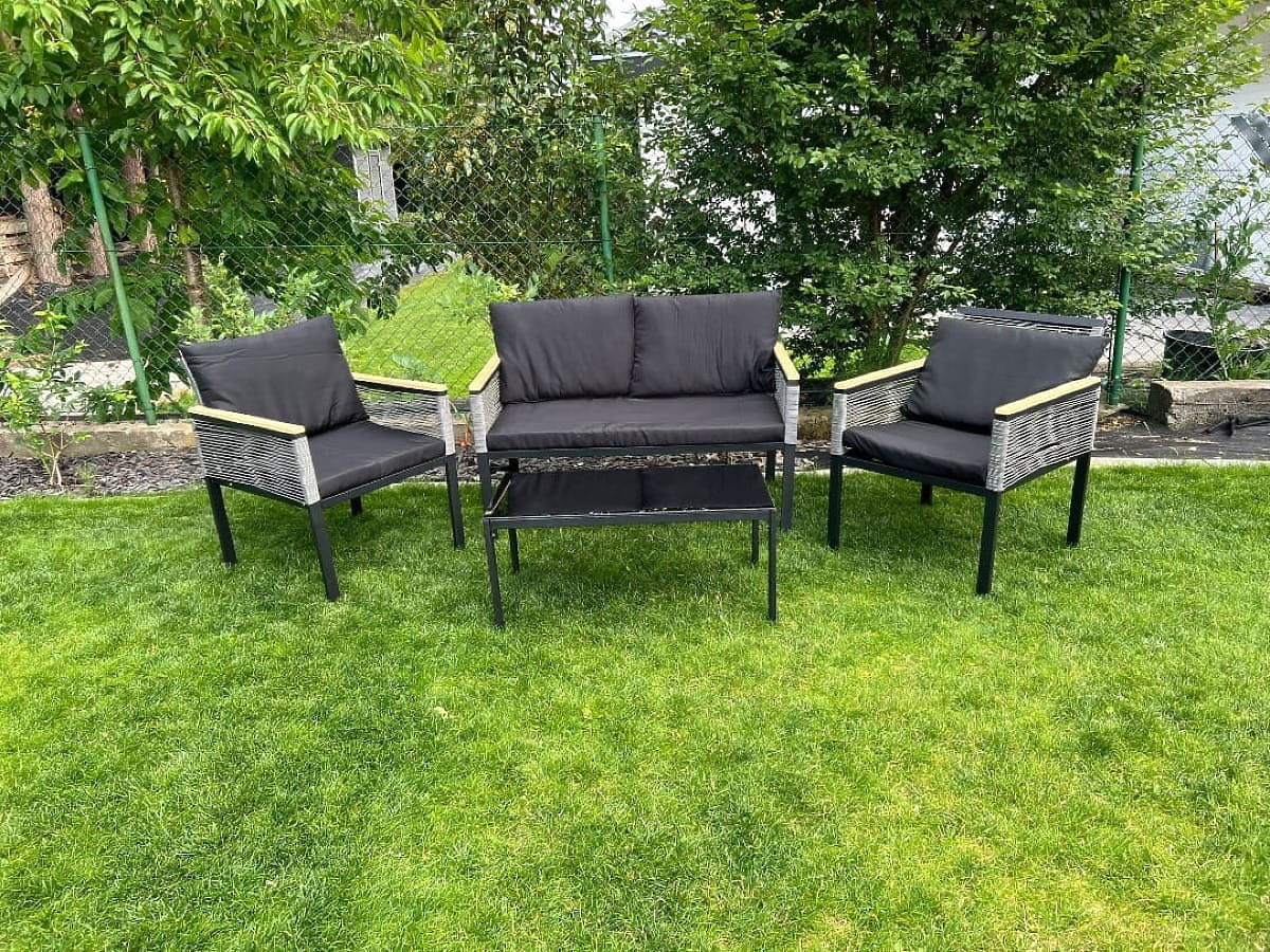 Kis erkély bútor szett (2 x szék, kanapé + asztal) CORTO fekete alumínium, szürke technorattan