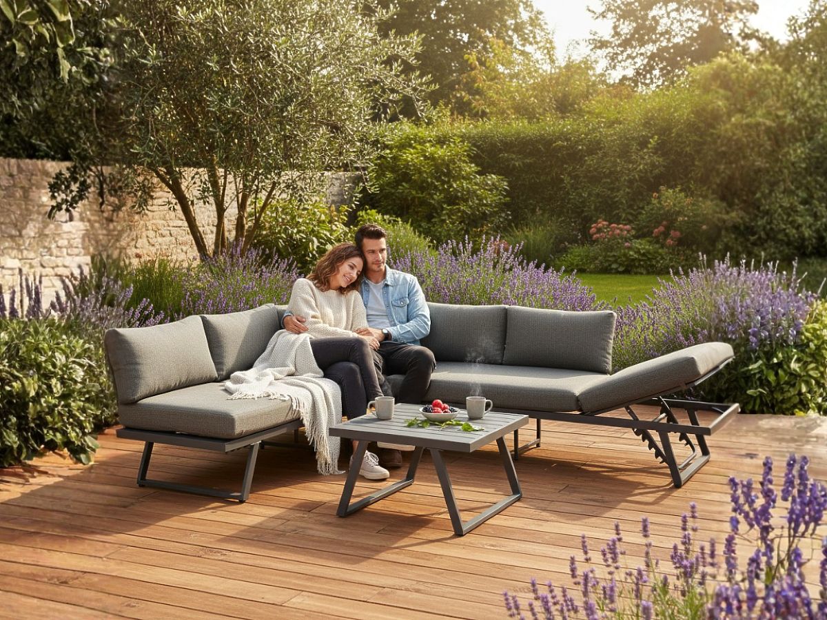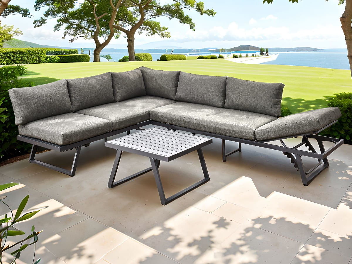 Kerti sarokülőgarnitúra alumíniumból, asztallal, állítható háttámlával RADIOSO