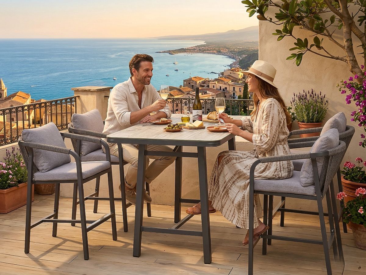 VÁRHATÓ SZÁLLÍTÁS 2026 ÁPRILIS ELEJÉN A BREZZA bútorkészlet kivételes ajánlat azok számára, akik modern, klubos hangulatot szeretnének varázsolni kertjükbe, teraszukra vagy patiojukra. Ez az exkluzív szett a kerti bútorok között szokatlan formával rendelkezik – egy magas bárasztalból és négy kényelmes bárszékből áll. Ideális megoldás nyári esték ünneplésére italokkal, harapnivalókkal vagy kötetlen beszélgetésekkel barátok között. A többrétegű ülés megfelelő sűrűségű habbal és puha háttámlával biztosítja, hogy a magas székek is a pihenés szinonimájává váljanak. Az asztal nagy, 150 x 90 cm-es lapja rengeteg helyet biztosít edényeknek és dekorációknak, így minden szabadtéri parti központi pontjává válik. Műszaki specifikáció: Modell neve: BREZZA Szett típusa: Bárszett (magas asztal + 4 bárszék) Asztal méretei: Hossz: 150 cm Szélesség: 90 cm Magasság: 101 cm Bárszék méretei: Szélesség: 60 cm Mélység: 64 cm Magasság: 99 cm Párnák: Ülés: Vastagság 5 cm, többrétegű szerkezet a tartósság és kényelem érdekében (1 cm polipropilén 350 g + 3 cm hab/gumi 20D + 1 cm polipropilén 350 g). Háttámla: Puha PP pamut töltet, amely tökéletesen alkalmazkodik a háthoz. A BREZZA szett választásával a szokatlan stílusra és funkcionalitásra fogad, amely megváltoztatja a kültéri tér karakterét. Ez egy bútor, amely közös időtöltésre hív a friss levegőn, egyesítve a bár hangulatának szabadságát az otthoni kényelemmel. Hozza létre saját privát relaxációs zónáját, amely elbűvöli vendégeit és a nyári találkozók kedvenc helyévé válik.